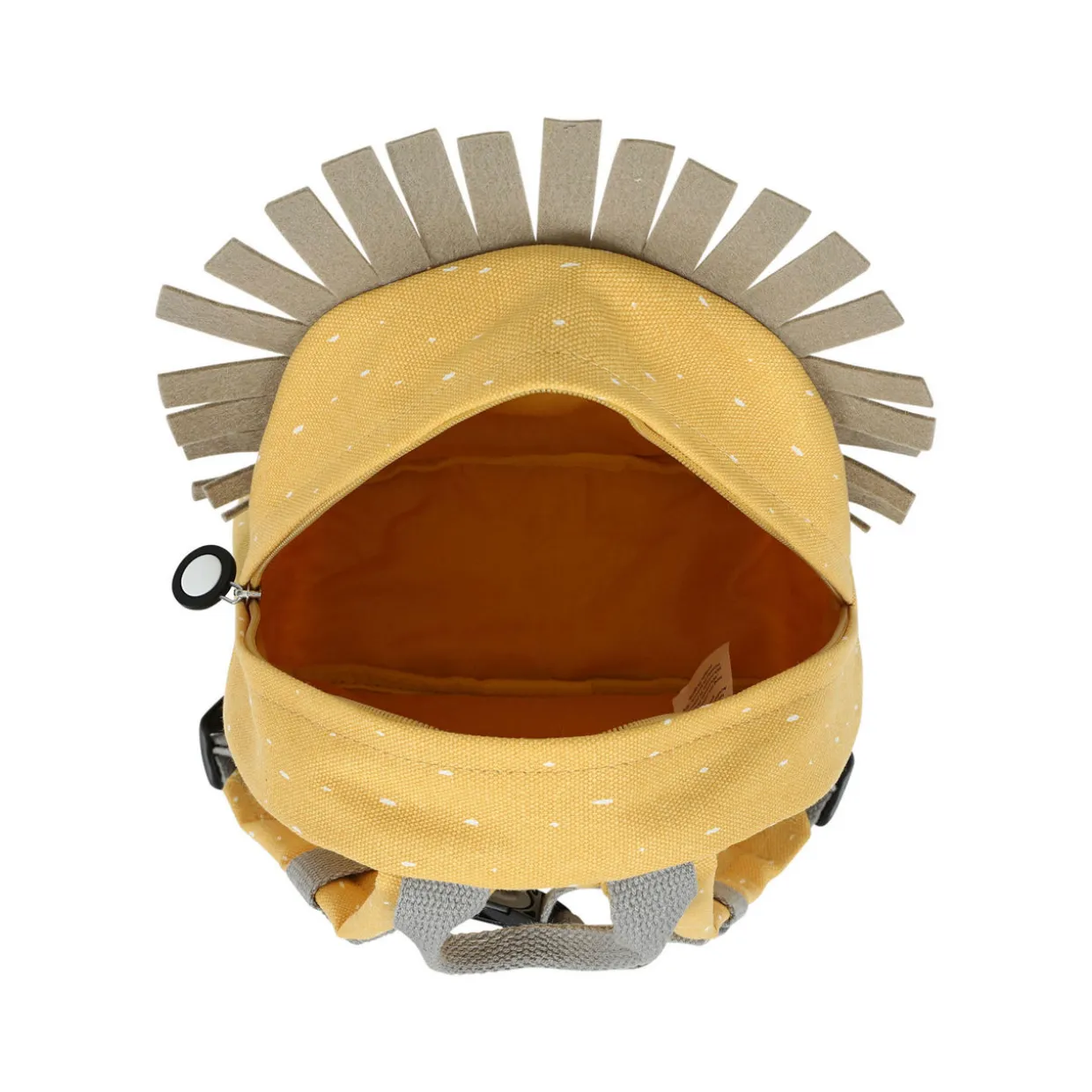 - Water-repellent coating, small size, zip fastening, top carry handle, adjustable padded shoulder straps, top carry handle, clasp-fastening chest strap, name tag inside
