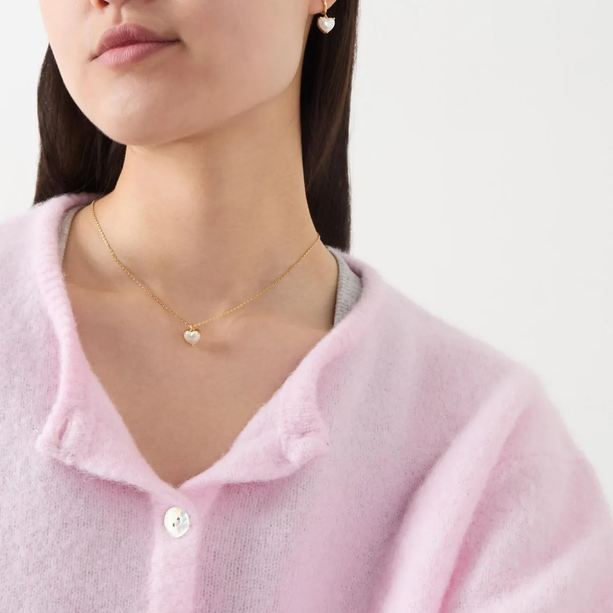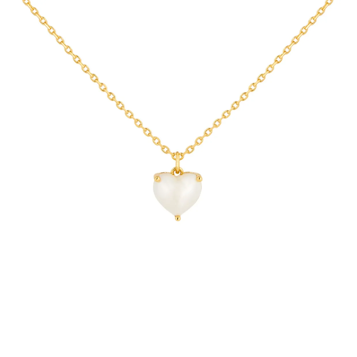 - Heart-shaped pearl-coated pendant, three-prong design, adjustable, signature lobster claw fastening, gold-tone finish