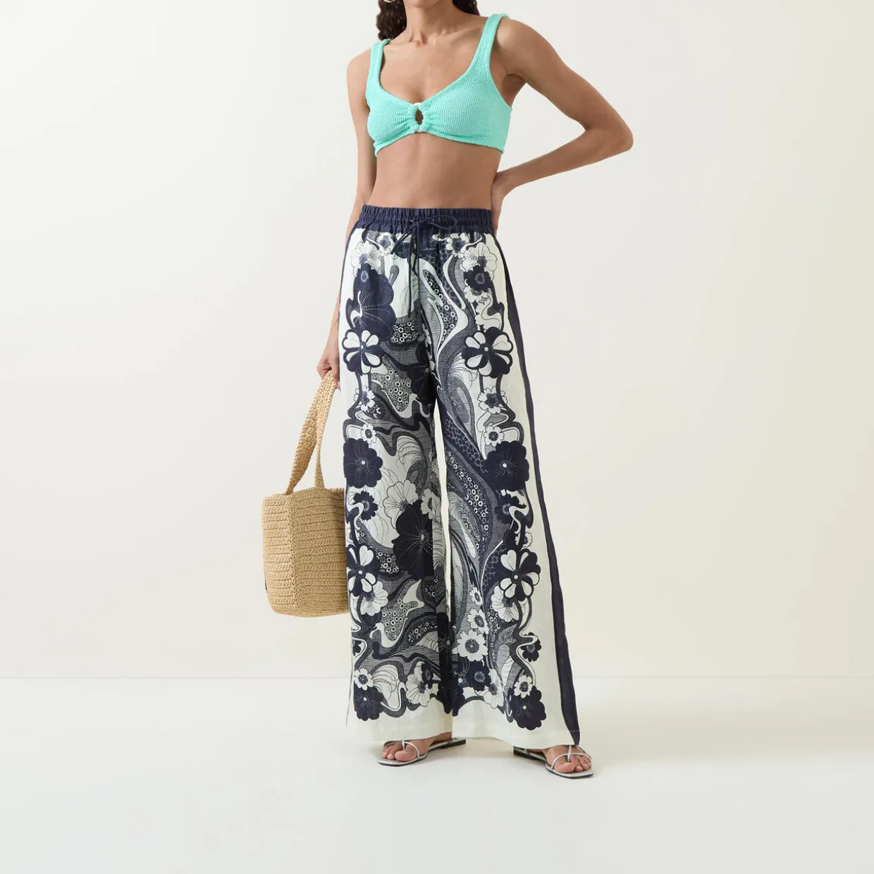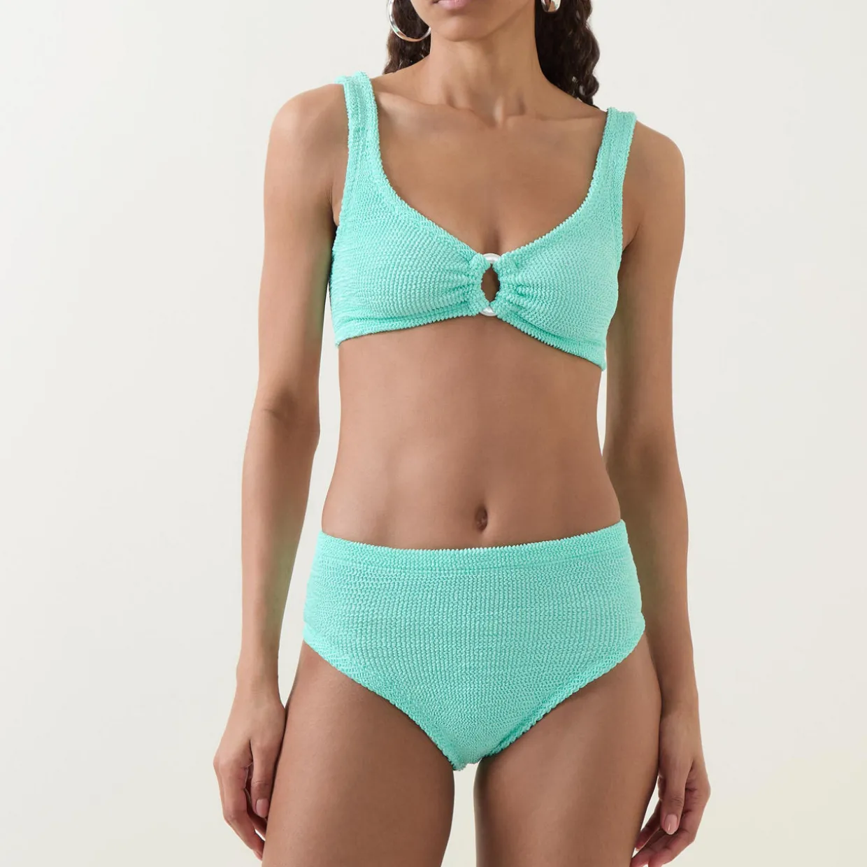 - Bikini top: Two wide fixed straps, low cut back, elasticated, ruched detailing, ring embellished detail, The Original Crinkle™ fabric. Bikini bottoms: High-rise, elasticated, The Original Crinkle™ fabric