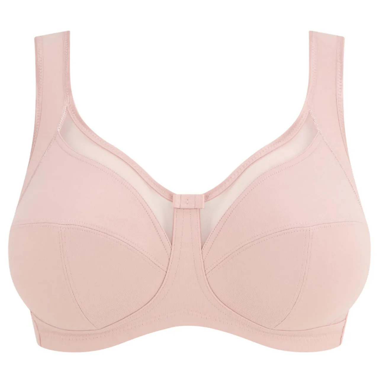 - Full cup style, wireless, wide adjustable straps, hook and eye fastening, adjustable fit, bow detail, mesh panel