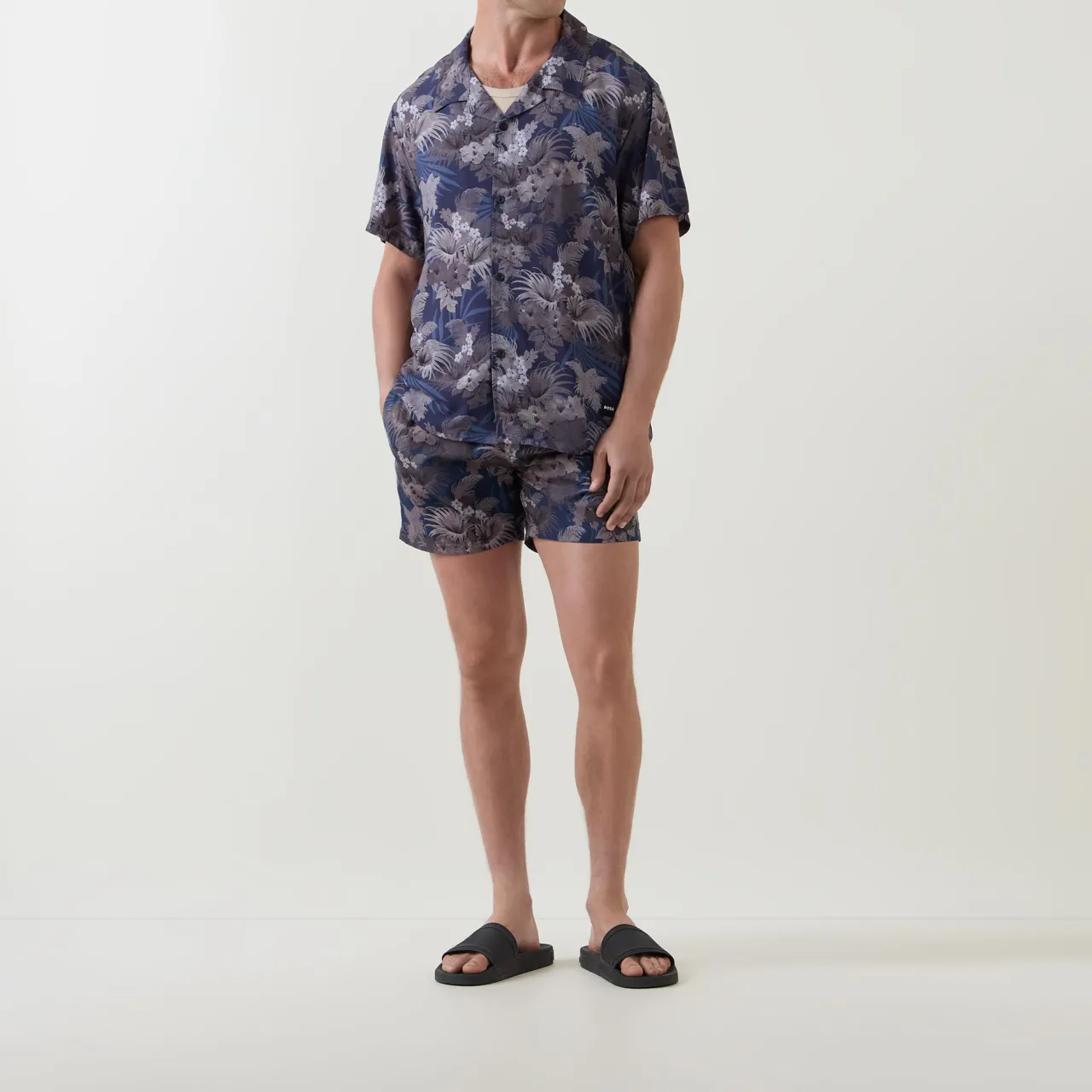 - Elasticated waistband, adjustable drawstring fastening, two side in-seam pockets, one rear patch pocket, piranha print design, logo patch, mid-rise, slim-cut leg, smooth seamless fabric