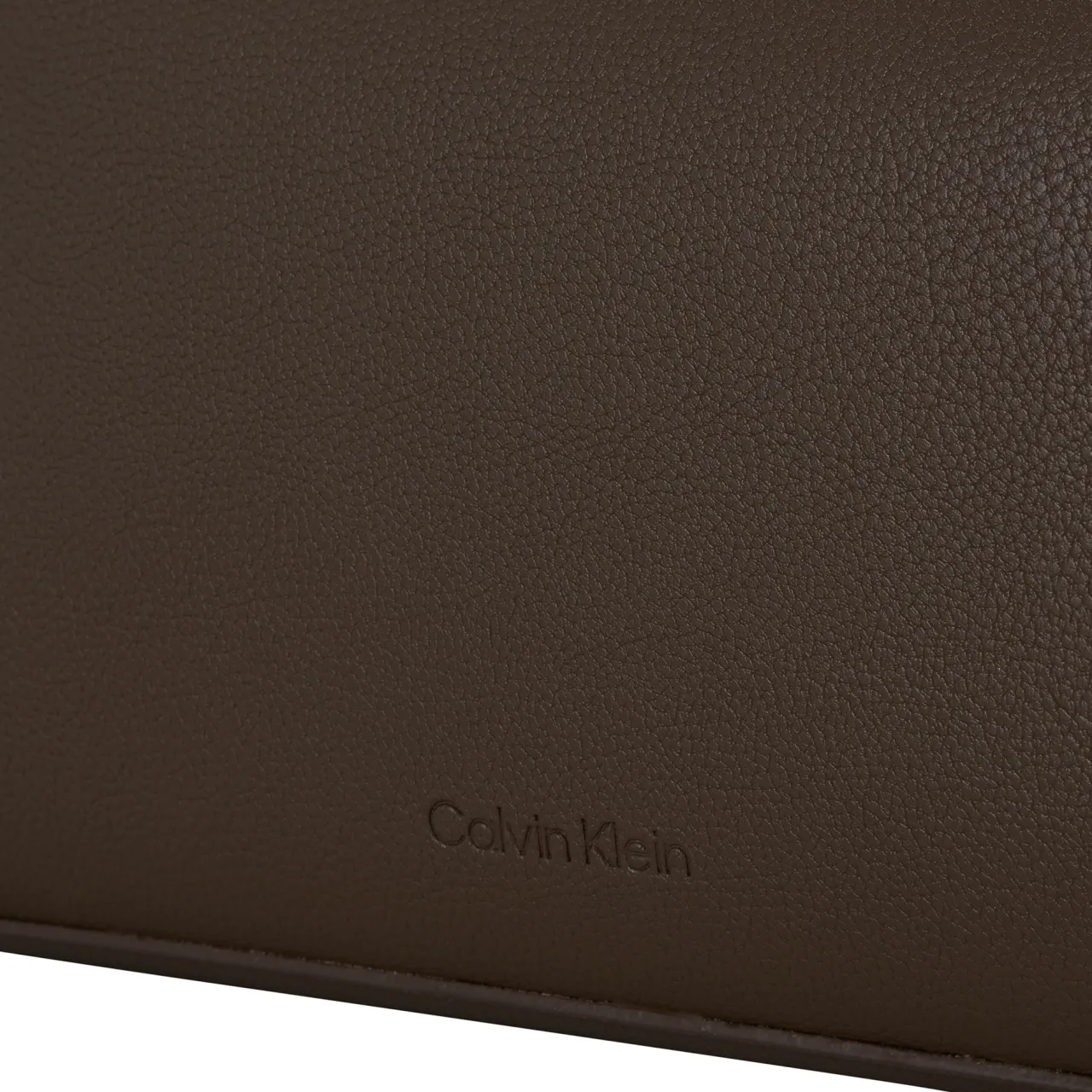 - Carry handle, top zip fastening, silver-tone hardware, pebbled finish, logo details