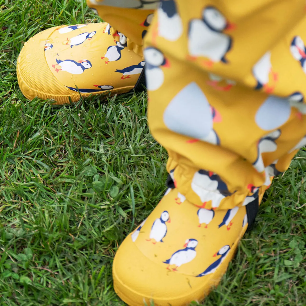 - Slip-on style, crafted from durable, eco-friendly, PVC-free materials, cheerful design, puffin print