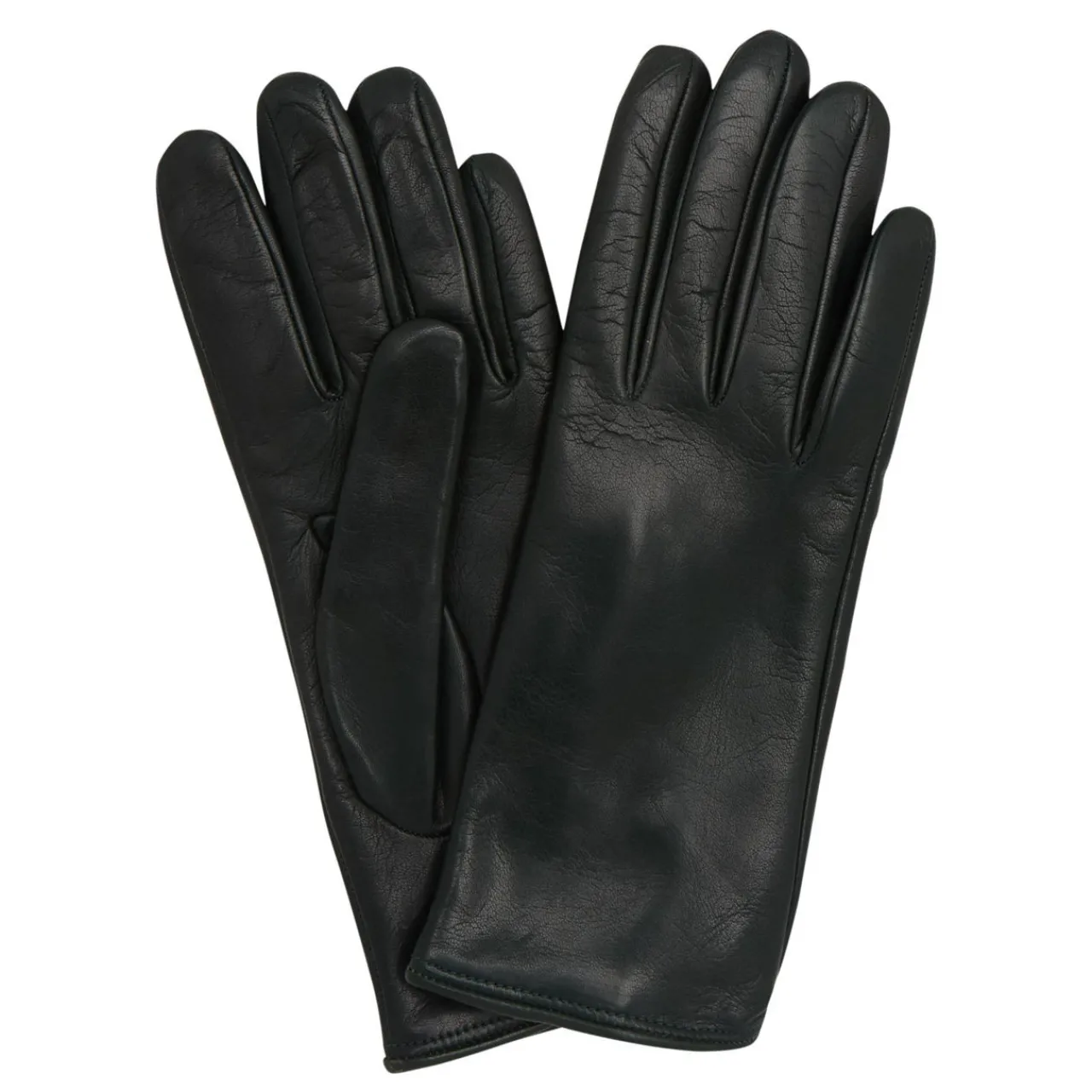 - Smooth leather gloves, palm opening, cashmere and wool lined design