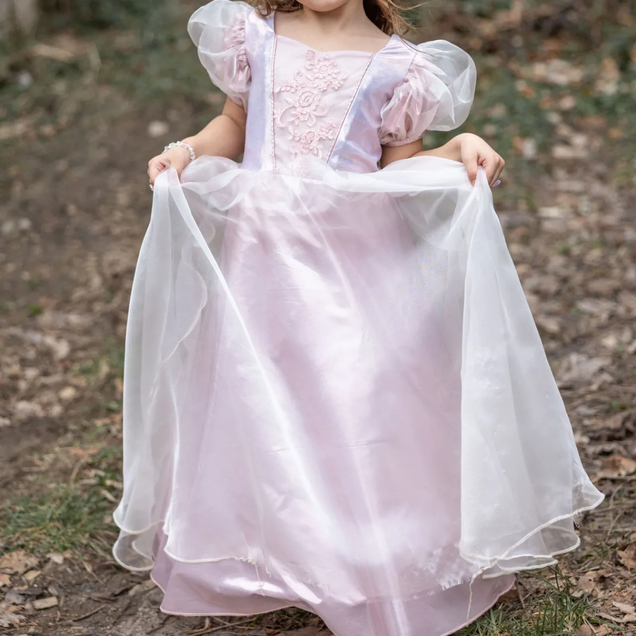 - Short puff sleeves, shimmering tulle upper, embellished details