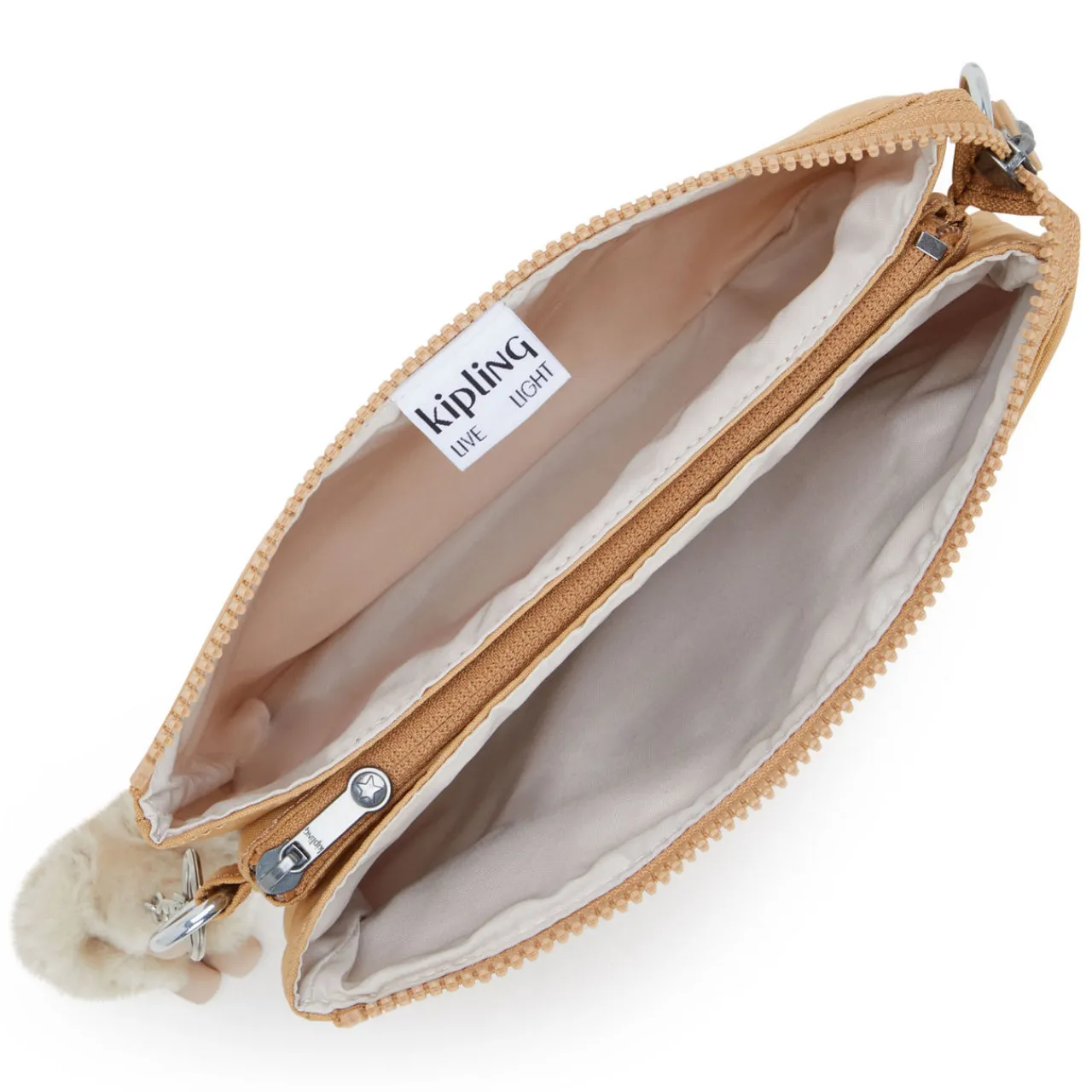 - Adjustable strap, top zip-fastening closure, front pocket, round Kipling logo, attached monkey charm, water repellent finish