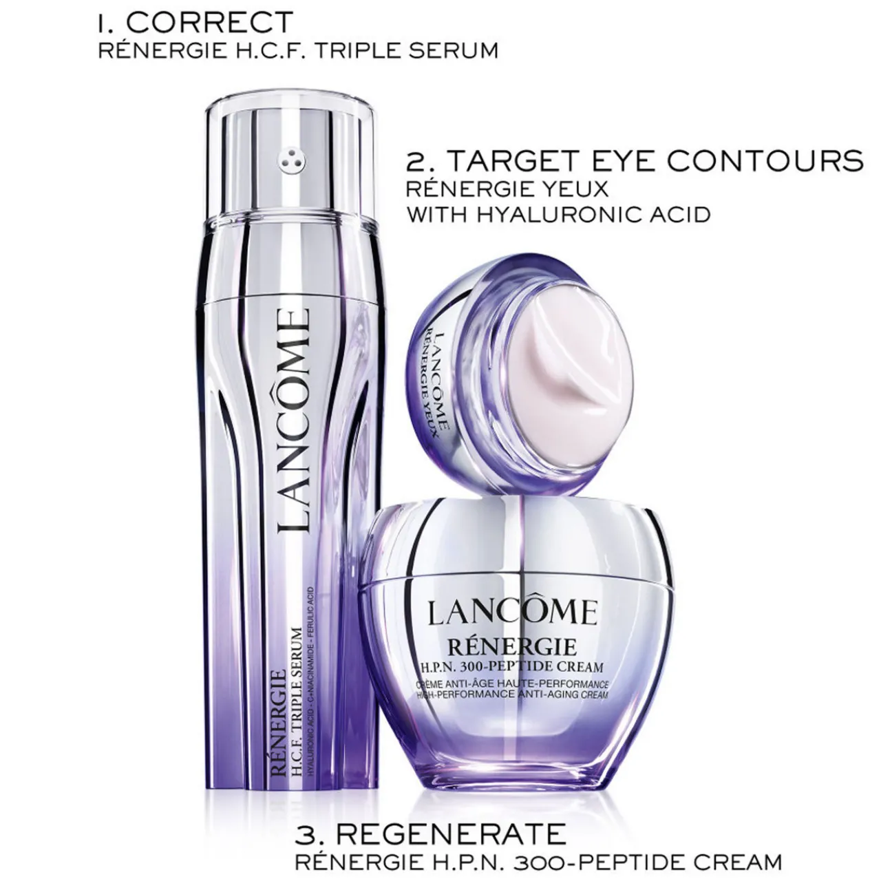 - How to use: Try the Rénergie high-performance routine. 1. On clean skin, start with Rénergie H.C.F. Triple Serum. 2. Apply the equivalent of 2 pumps and smooth evenly all over, using upwards motions. 3. Then, apply the Rénergie H.P.N. 300-Peptide cream to lock in all previous steps and help skin regenerate faster, even as you age. 4. A high-performance formula that envelops your skin without being heavy or overwhelming. Apply make up after cream application.