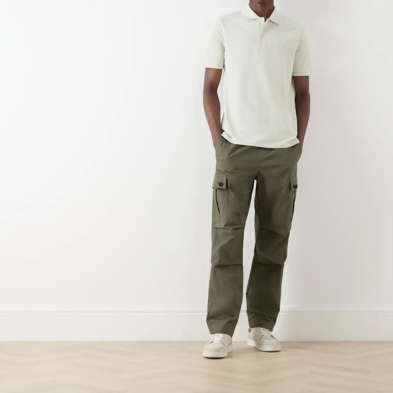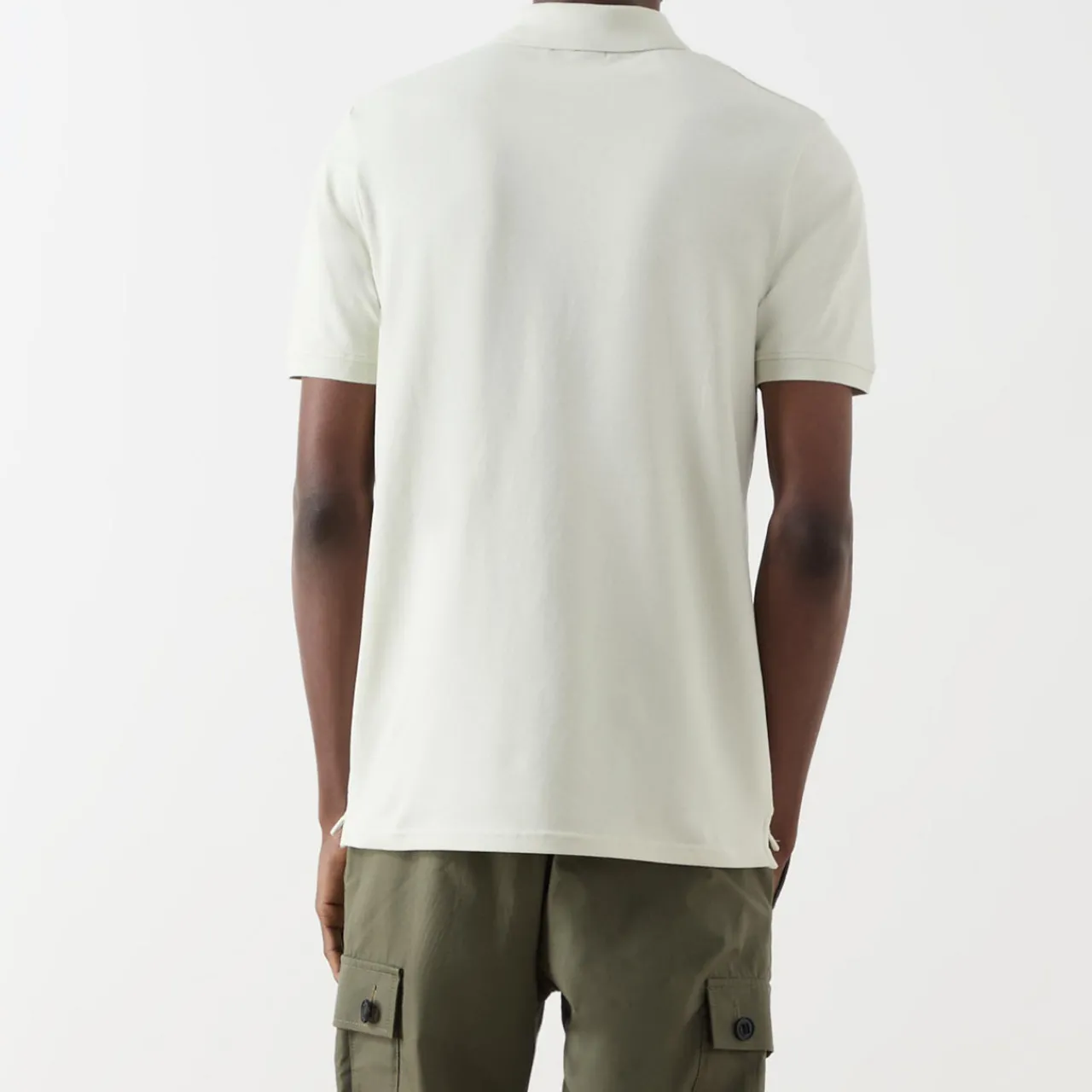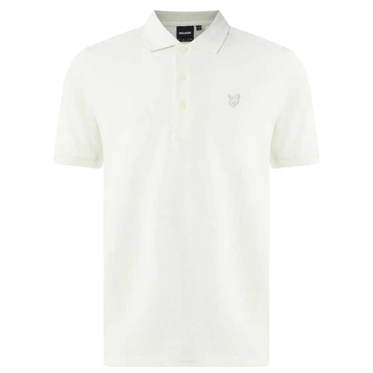 - Tonal eagle on chest, polo collar, short sleeves, button fastenings, straight hemline