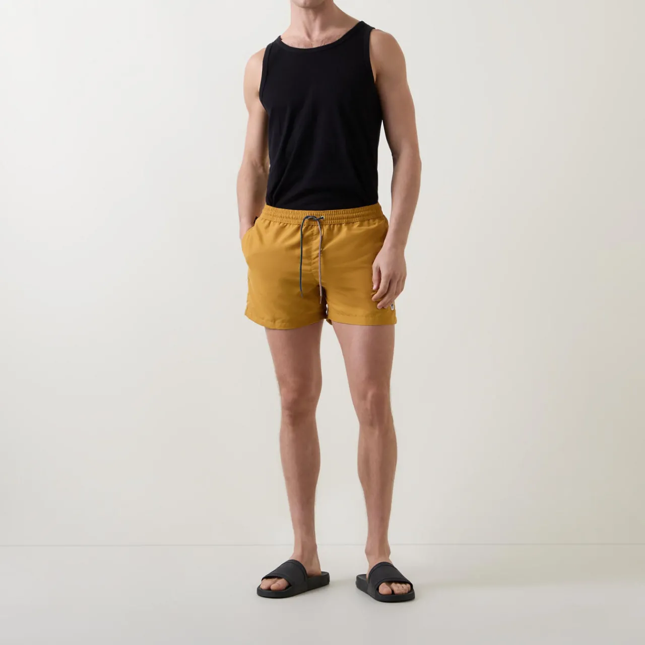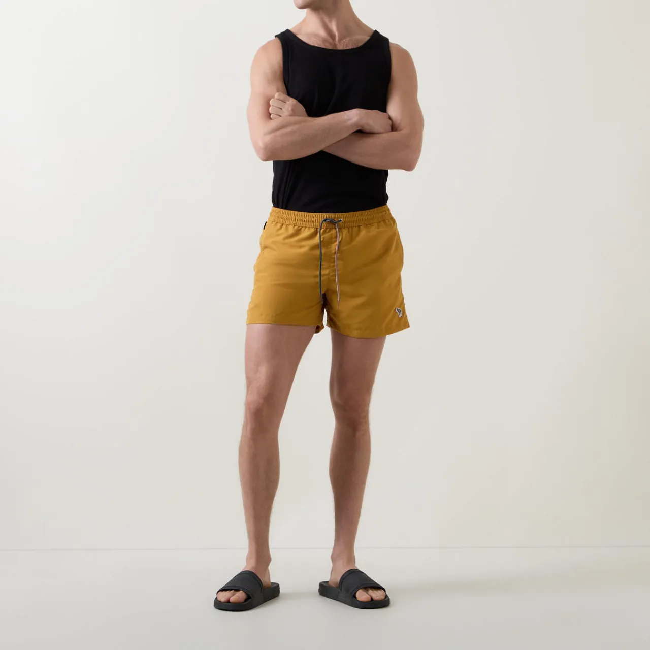 - Mid-rise, straight-leg, elasticated waistband with adjustable signature striped drawstring fastening, two side entry pockets, clean hems, Zebra felt logo detail