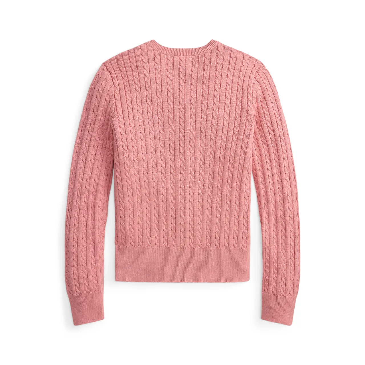 - Cable-knit design, crew neckline, buttoned placket, grosgrain trim along the underplacket, signature embroidered Pony logo, puffed long sleeves, rib-knit cuffs, rib-knit hem