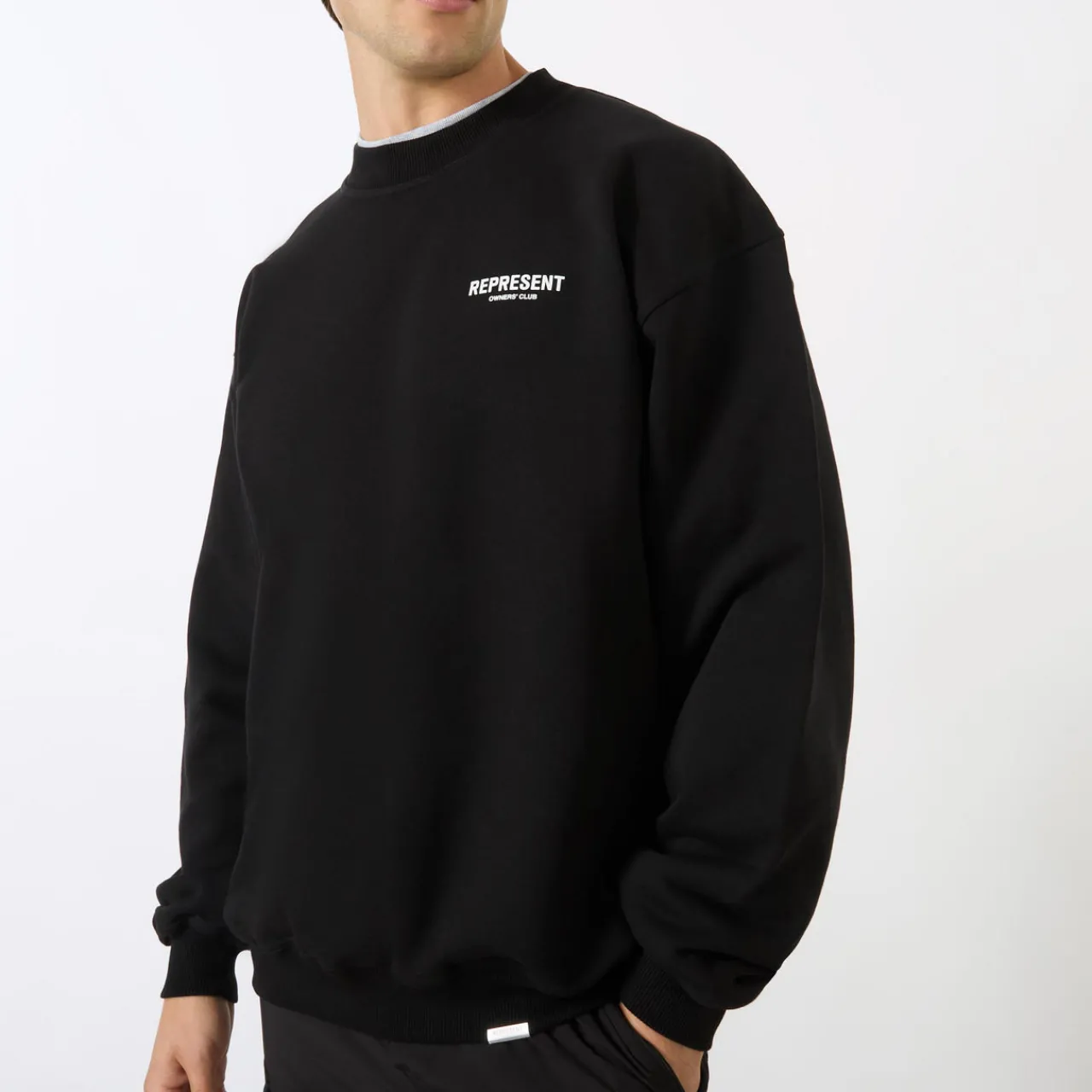 - Crew neckline, long sleeves, dropped shoulders, ribbed trims, branded tab, logo print at chest and back
