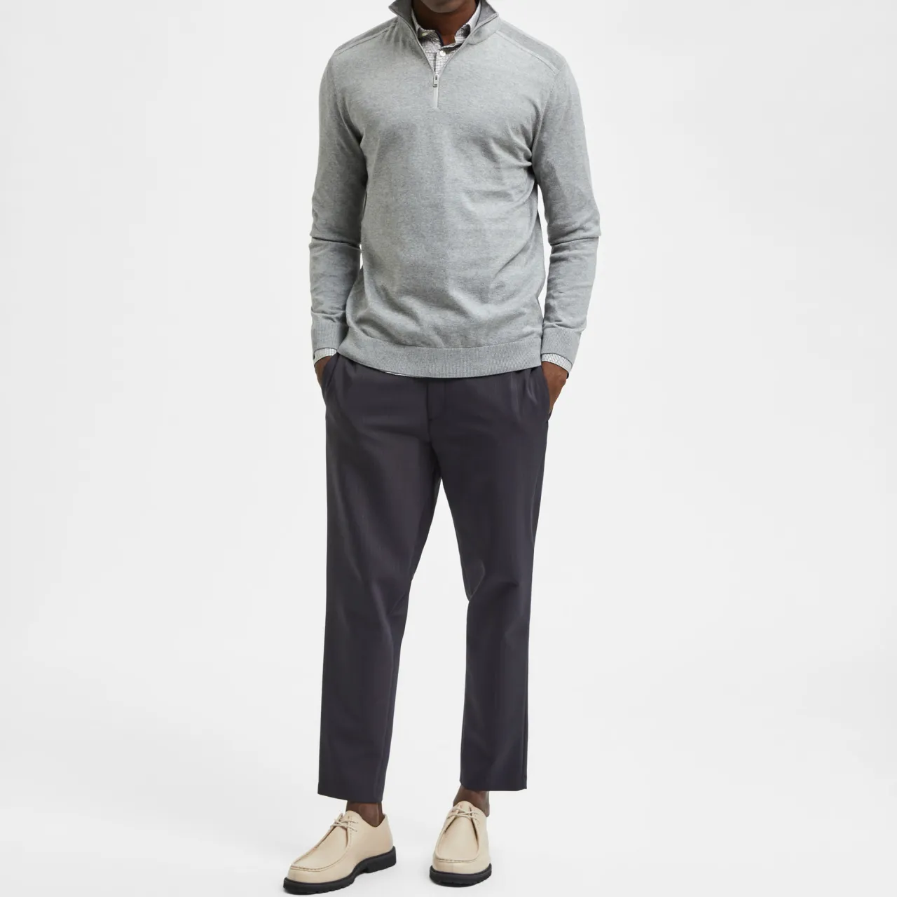 - High neck, long sleeves, ribbed cuffs, half zip fastening, regular fit