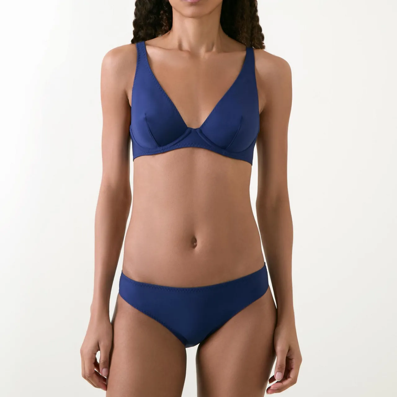 - Low-rise, high-cut legs, shaping mesh fabric, cheeky coverage, topstitch detailing, solid style