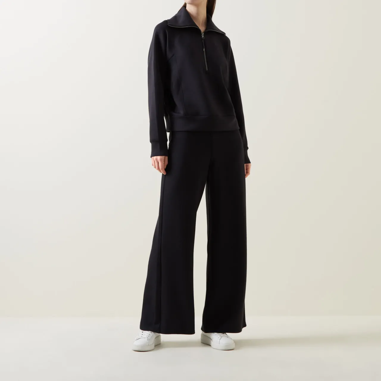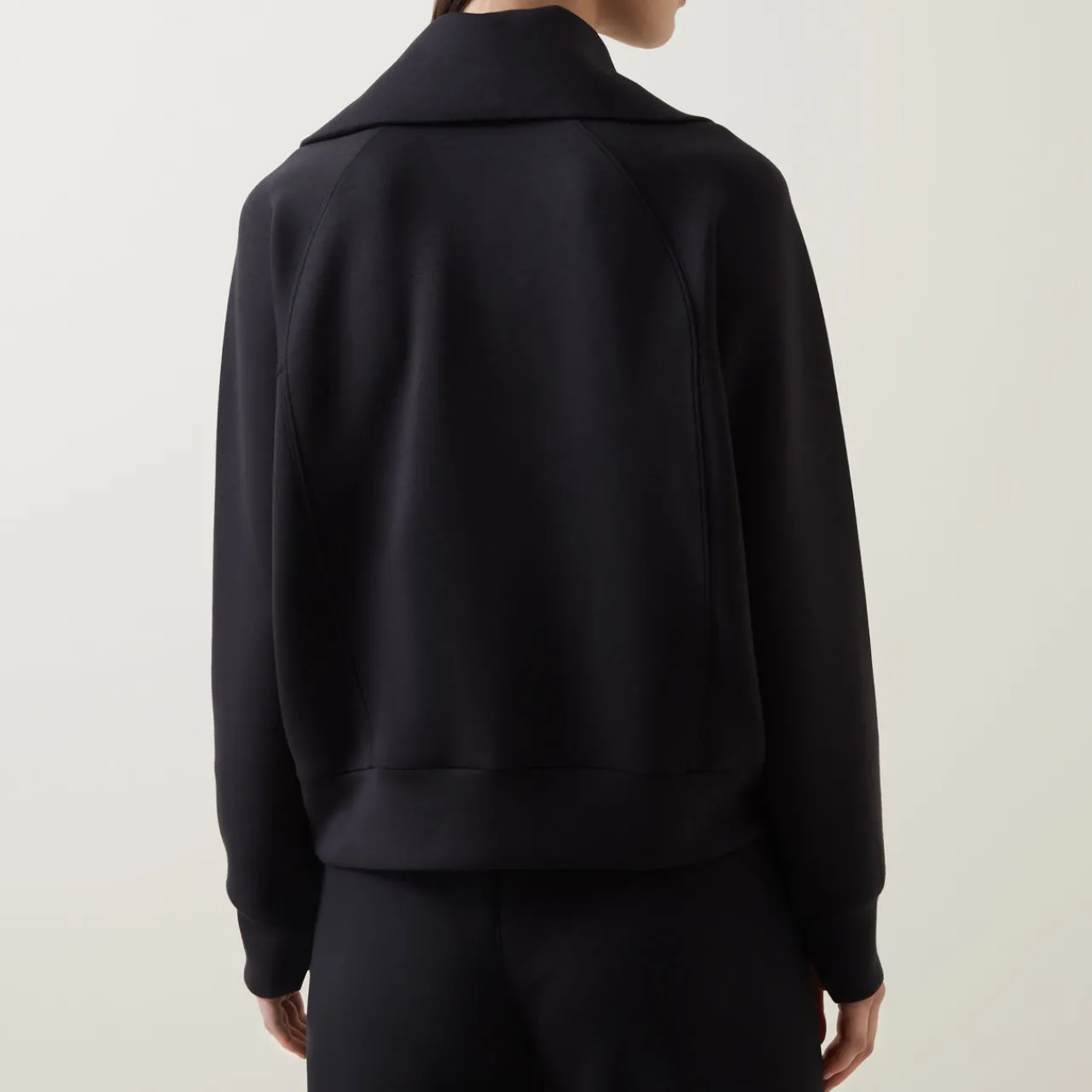 - Long sleeves, half-zip fastening, spread collar, ribbed trims