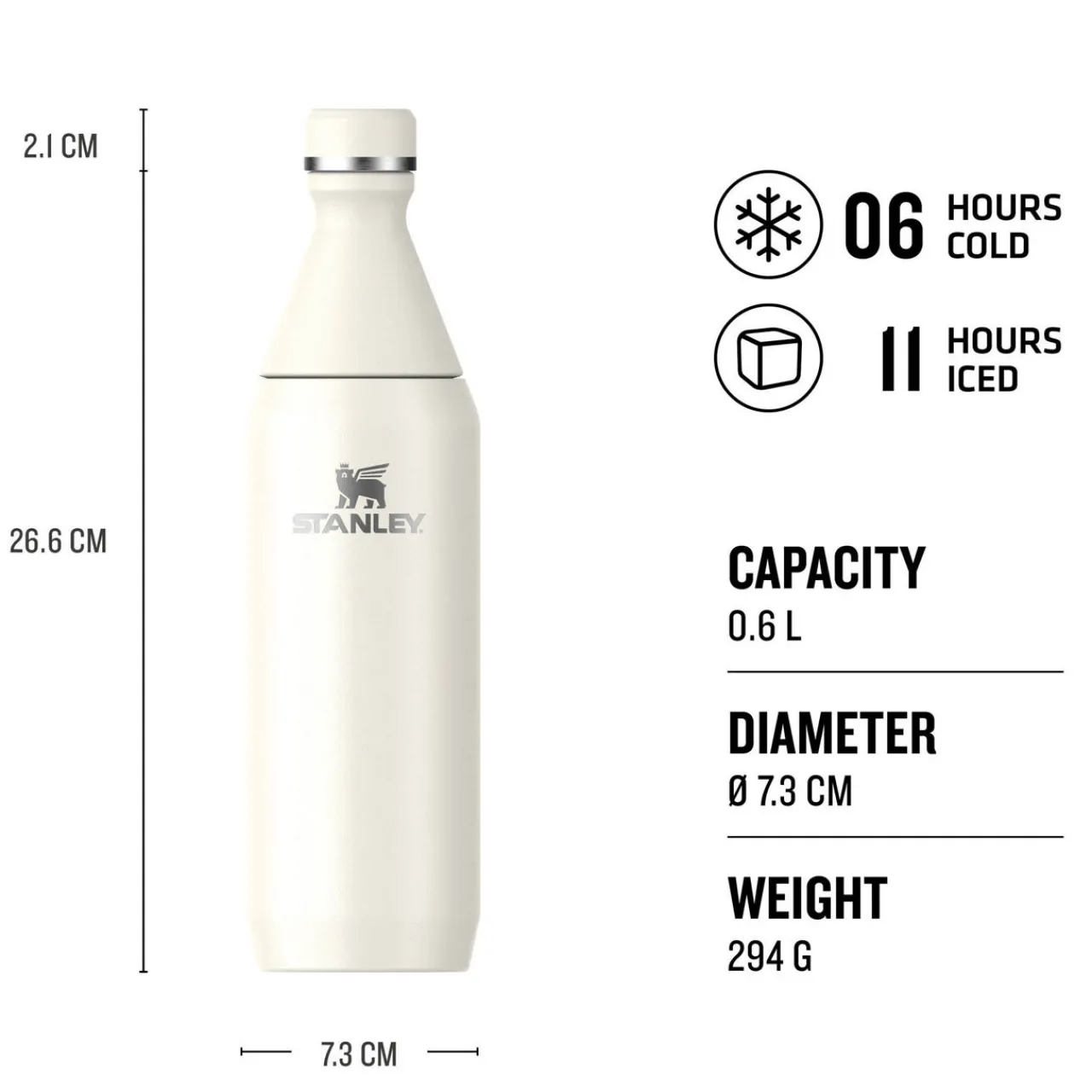 - Dimensions: H 26.6 x D 7.3cm; Capacity: 0.6L; Weight: 294g