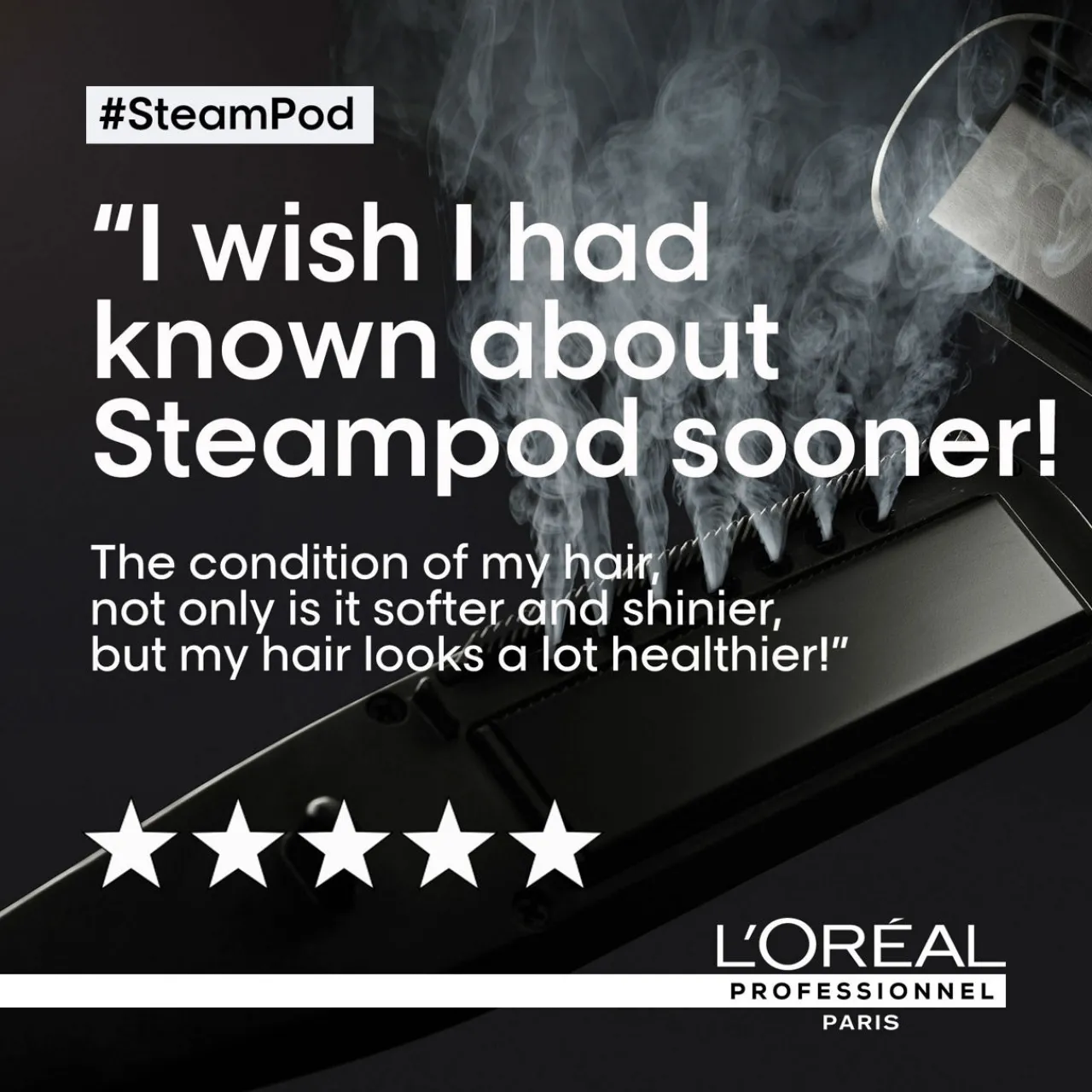Description: SteamPod 3.0 by L’Oréal Professionnel Paris is the go-to styler with its patented steam technology. From straight to wavy create versatile salon-worthy looks from the comfort of your own home.