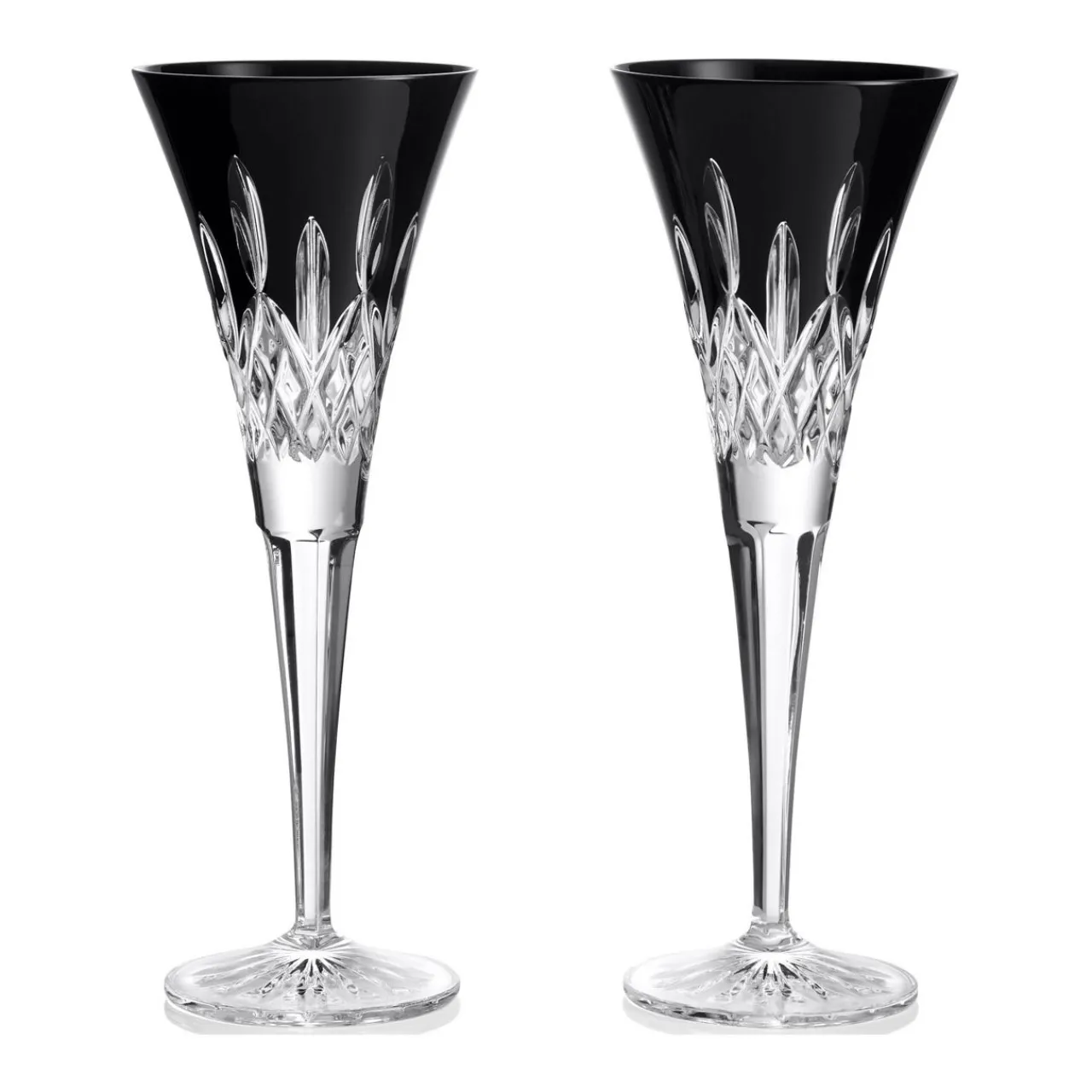 - Set of two, flute style, diamond wedge cuts, rich opaque black colour adds a striking contrast to the sparkling clear crystal
