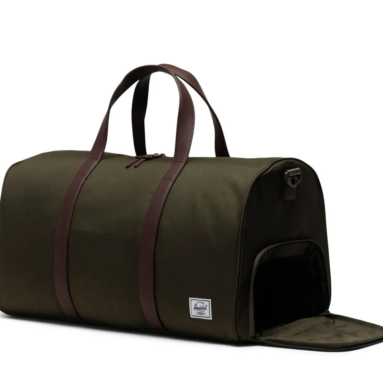 - Top carry handles, detachable shoulder strap, top-zip fastening, shoe compartment, logo badge