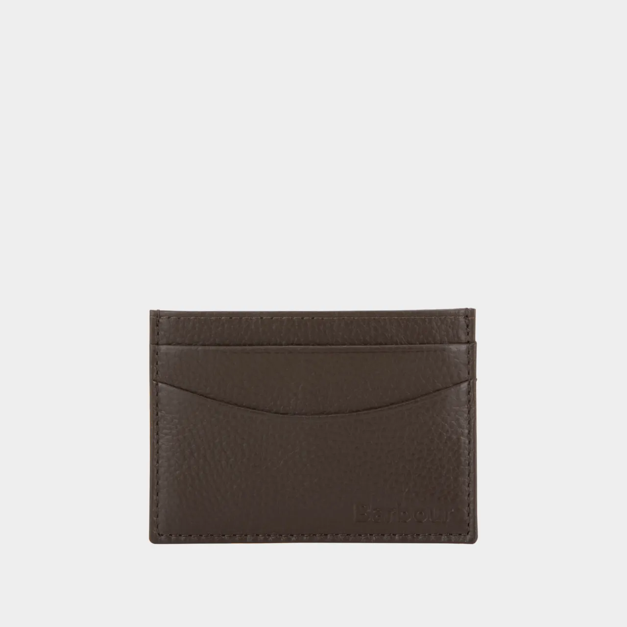 - Four card slots, debossed logo branding, tonal stitching, grained leather finish