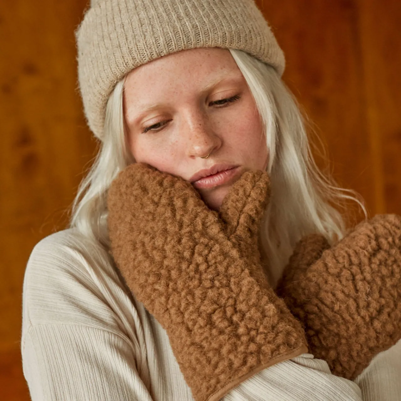 - Composition and Care: Main: 100% merino wool. Cuff: 93% cotton, 7% elastane. Sponge off light spills with a damp cloth & keep washing to a minimum. Wash on a delicate cool wool wash cycle with wool detergent, reshape whilst damp & leave to dry away from direct heat