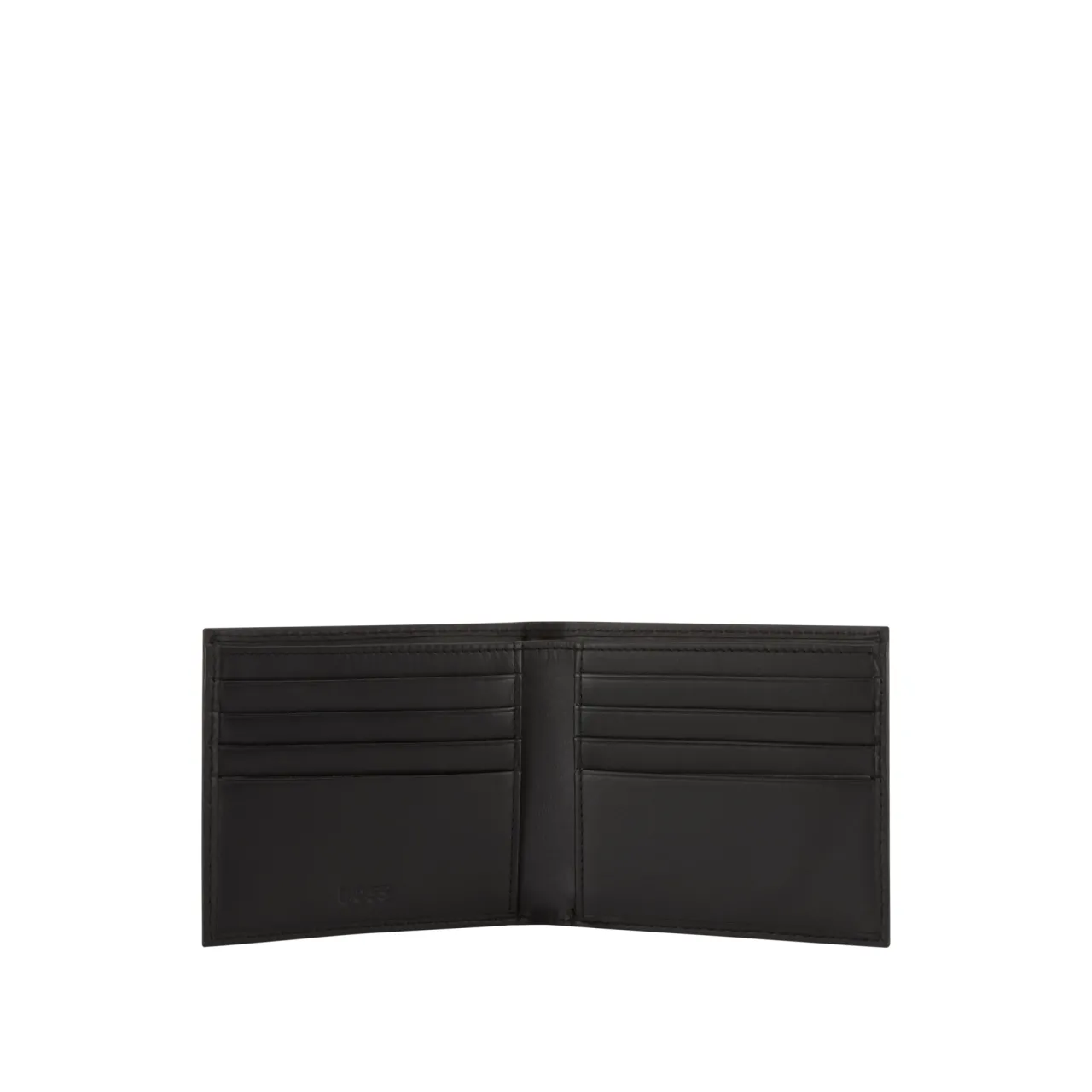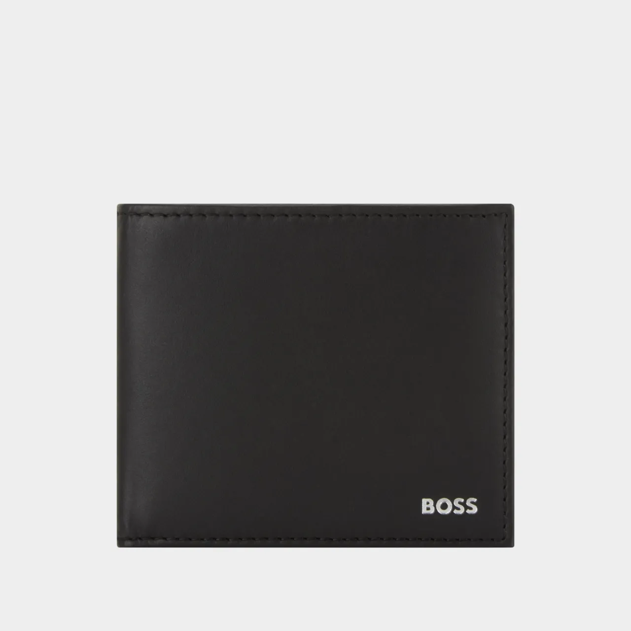 - Billfold style, front logo lettering, tonal stitching, smooth leather finish