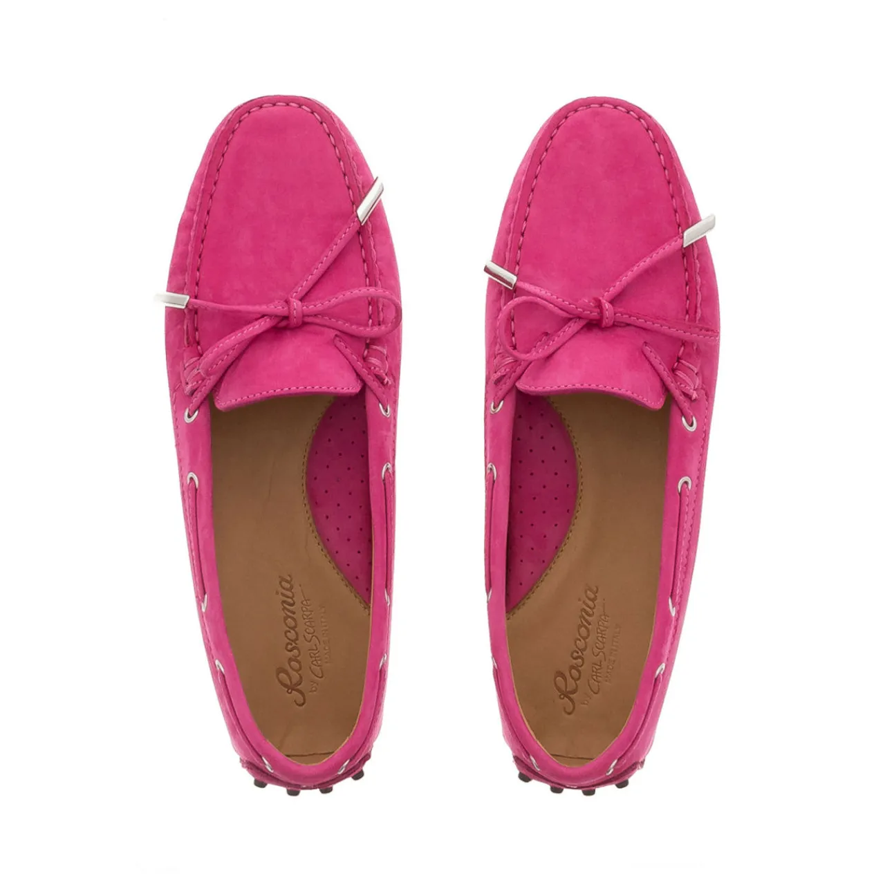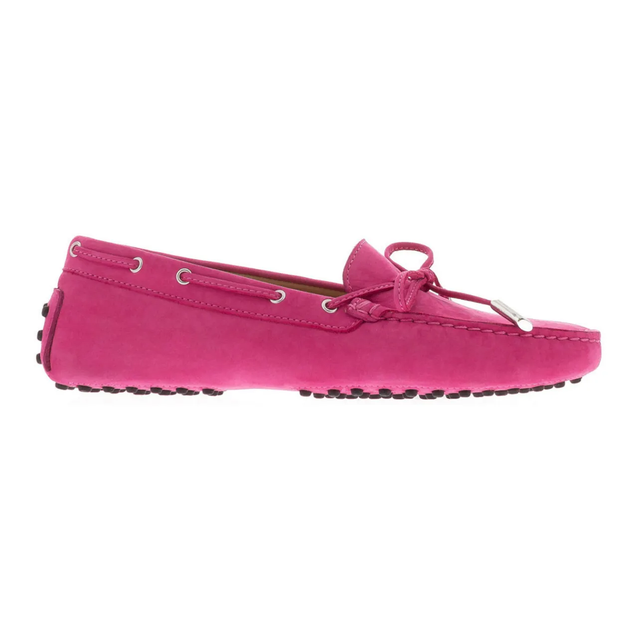 - Round shallow toe, penny-trim, pimple sole, topline interlace and feature bow, leather lining