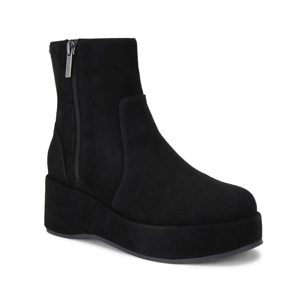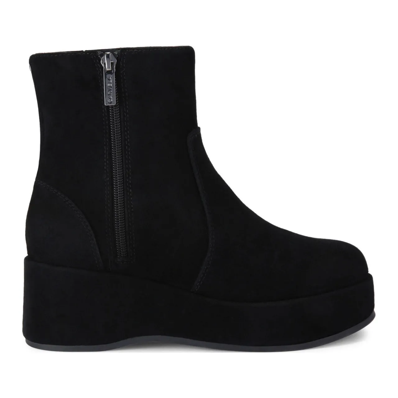 - Suede upper, side zip fastening, gunmetal branded zip tab, brand heel stud, round toe, platform sole, ‘All Day Long’ technology