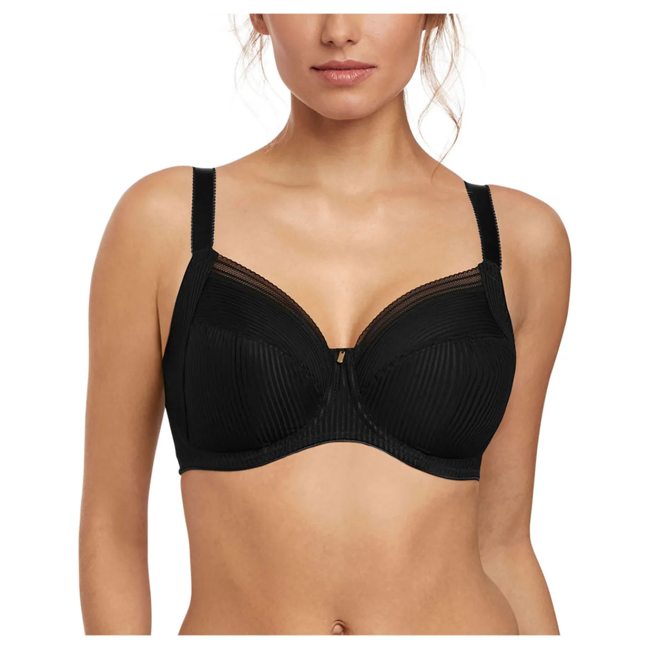 - Textured stripe pattern, adjustable straps, double hook and eye fastening, underwire cups, centre charm detail, side support.