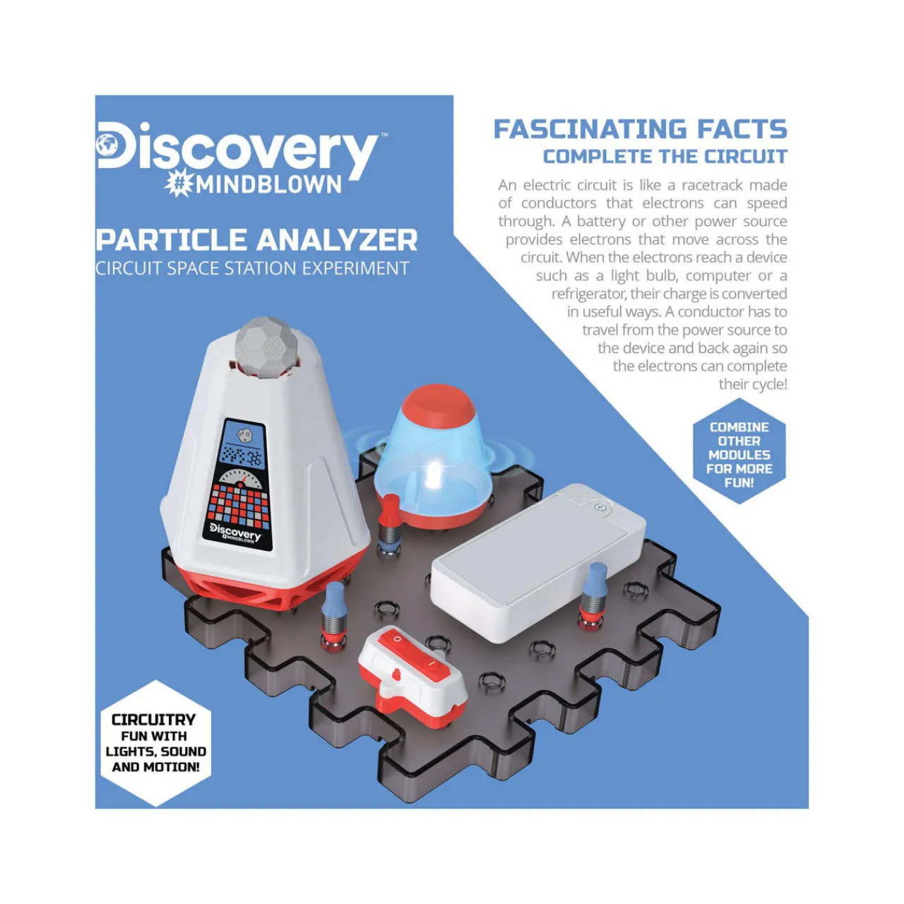 Discovery™ #Mindblown Particle Analyzer Space Station Circuitry Set lets you build your own experiments that are powered with real electricity! Create this fun circuitry project with a push-button module and levitate an asteroid from outer space. Conduct unique experiments that teach the different principles and nuances of electrical engineering and circuitry design.