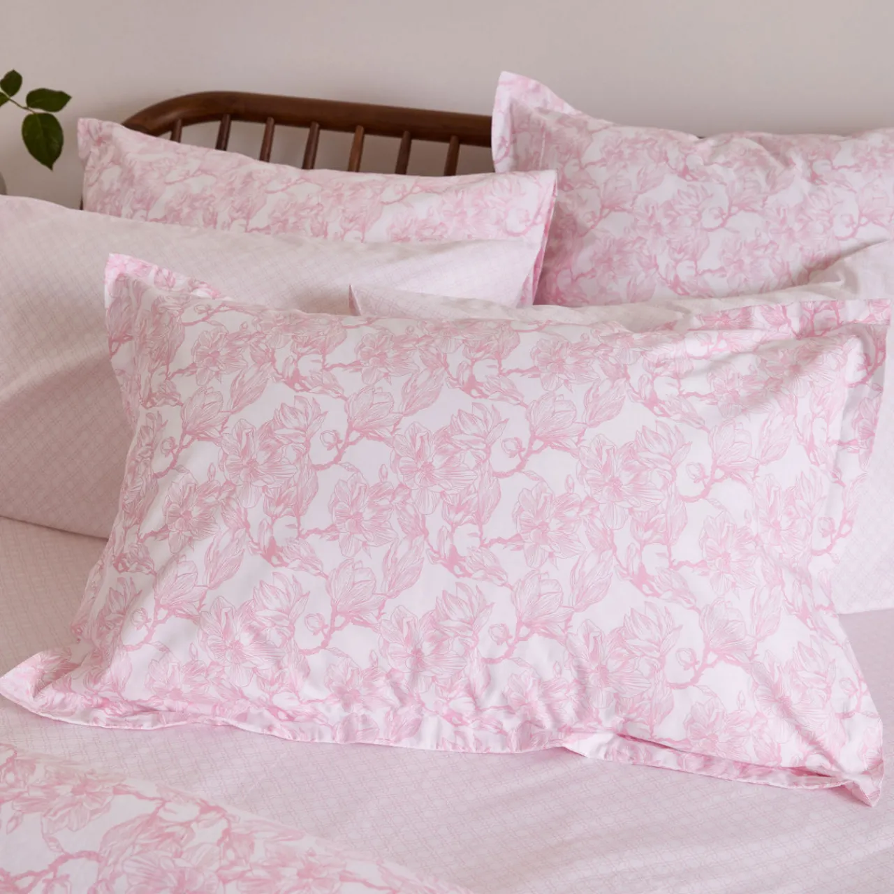 - One pillowcase, oxford style, magnolia pattern, durable, breathable, Oeko-Tex Certified fabric to ensure free of harmful chemicals and safe on skin
