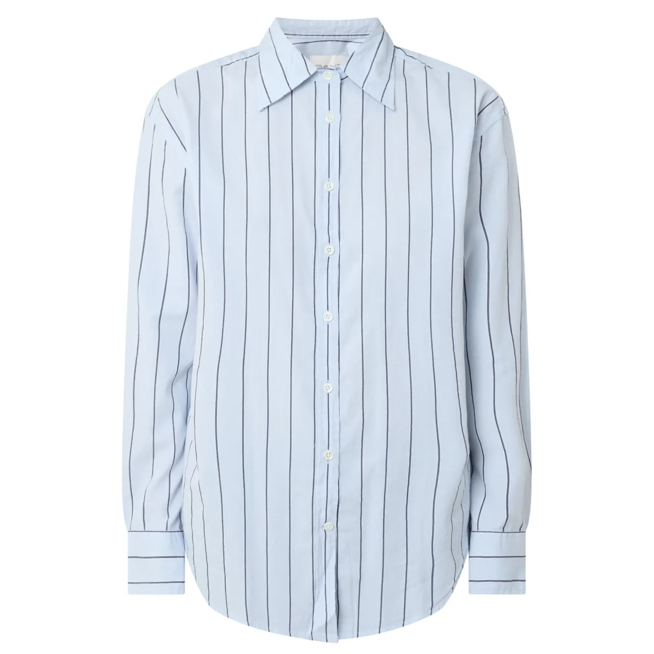 - Striped, long sleeves, curved hemline, button fastenings, pointed collar