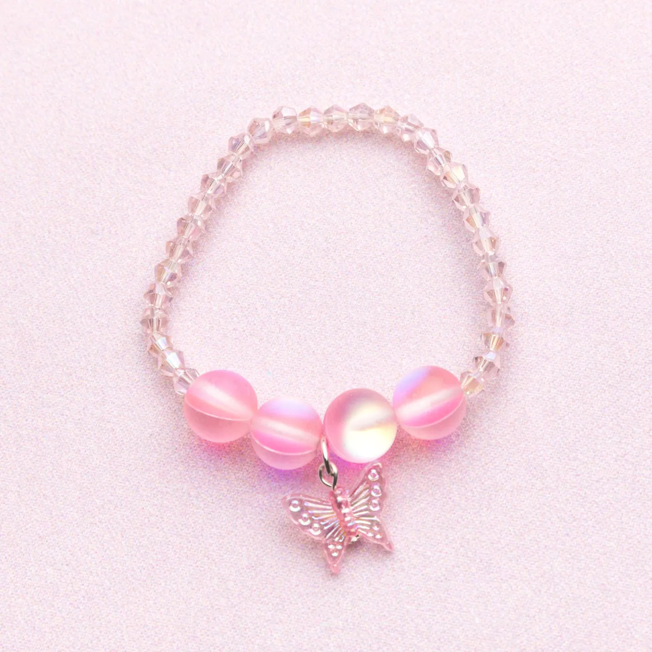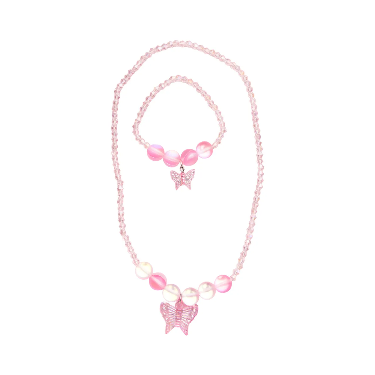 - Set includes one bracelet and one necklace, beaded structure, butterfly charms