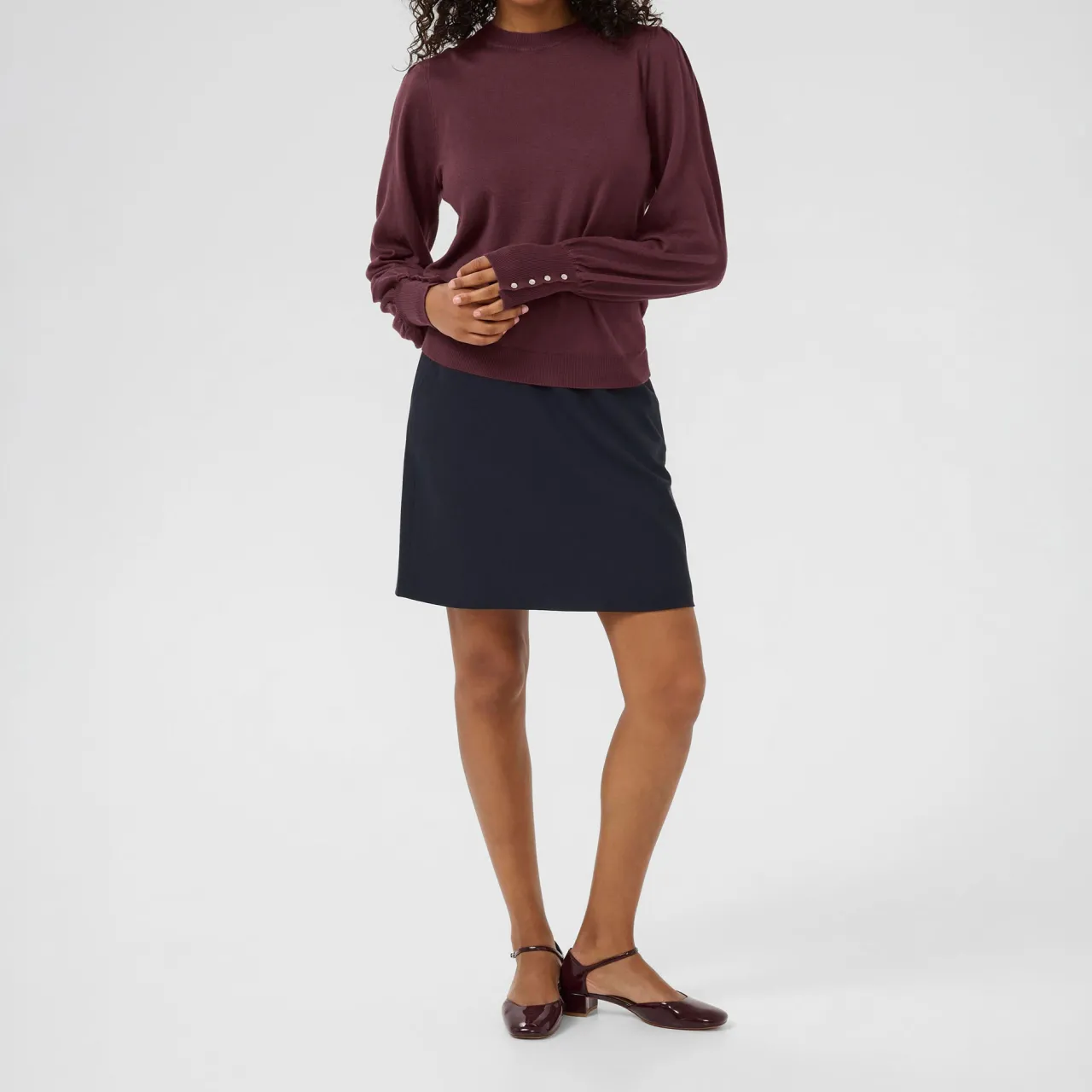 - Long sleeve, round neck, button detail