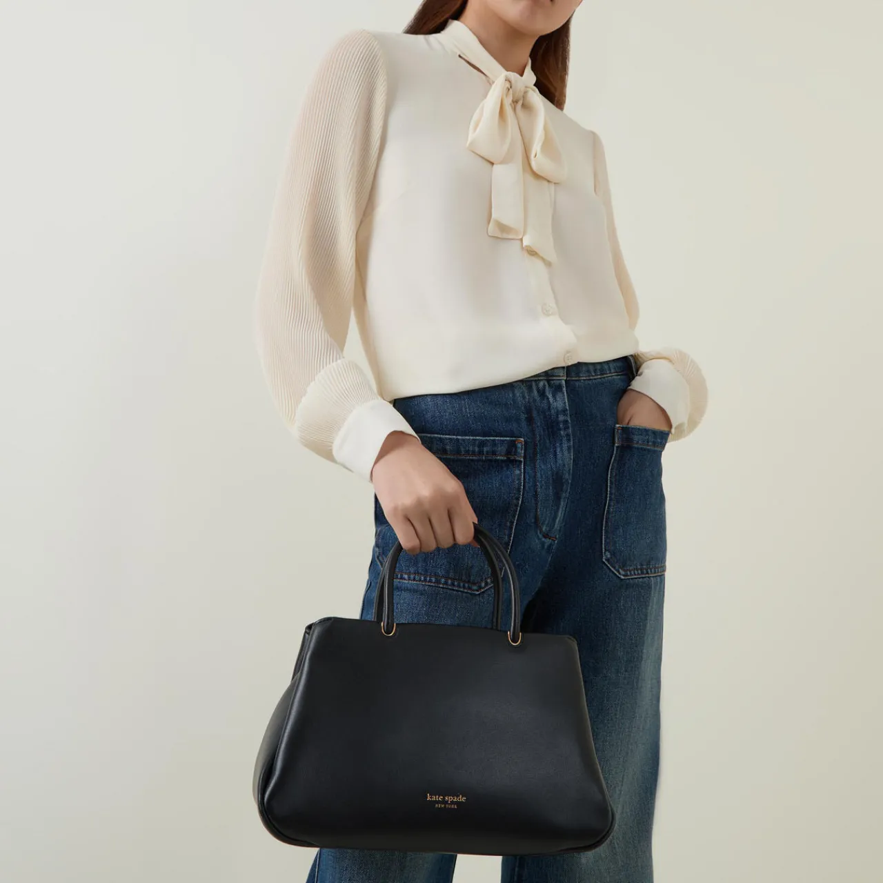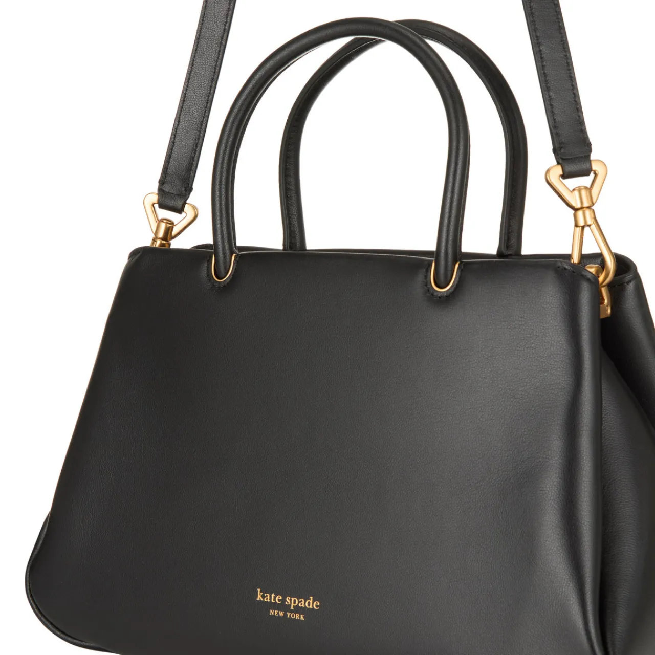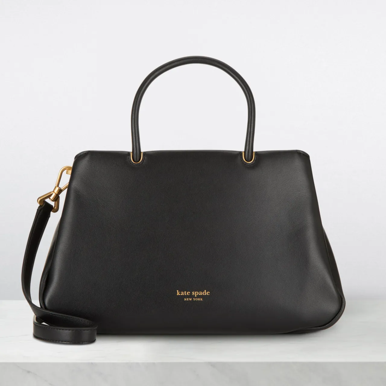 - Top handles, top zip fastening, detachable and adjustable crossbody strap, one exterior slip pocket, logo detail, gold-tone hardware, smooth leather