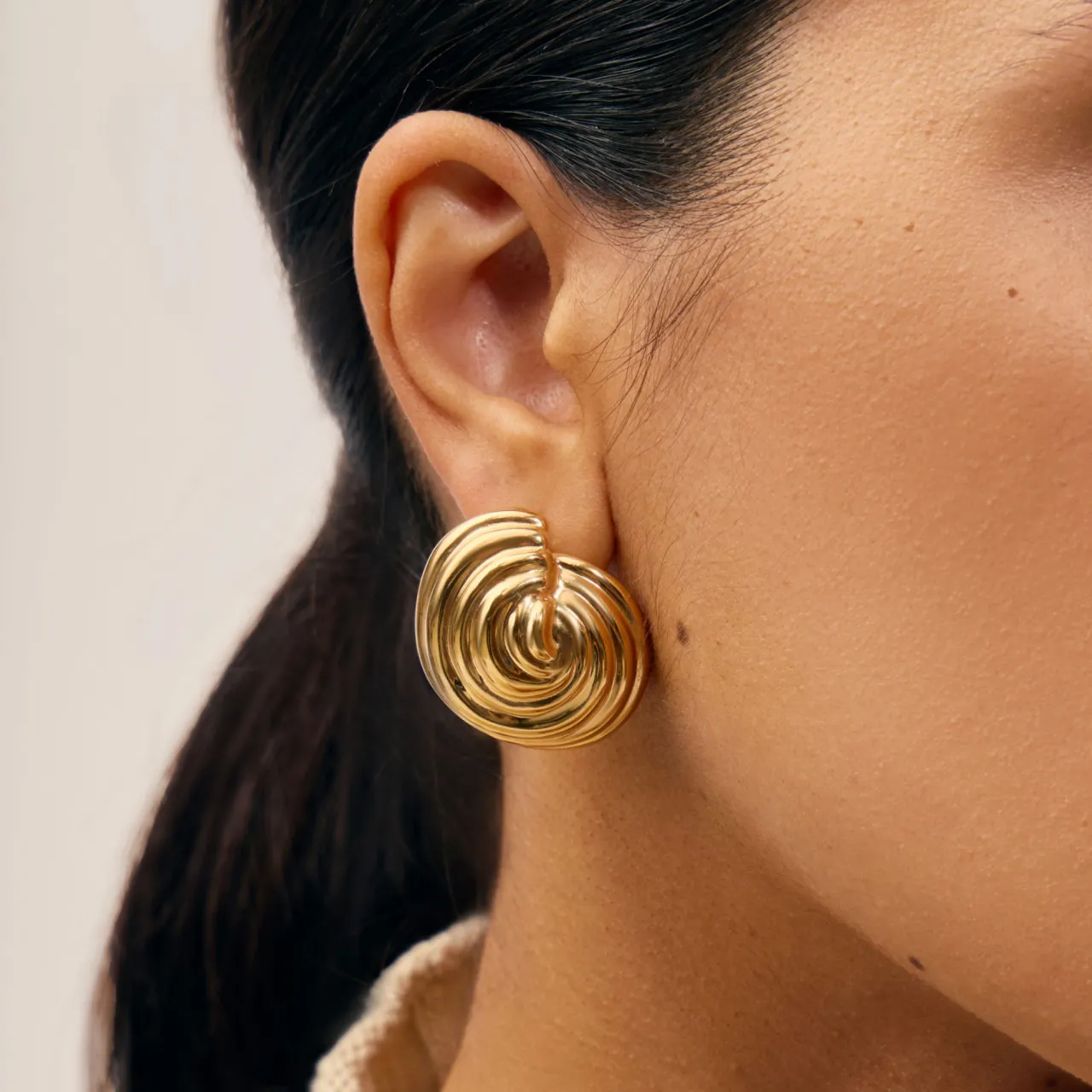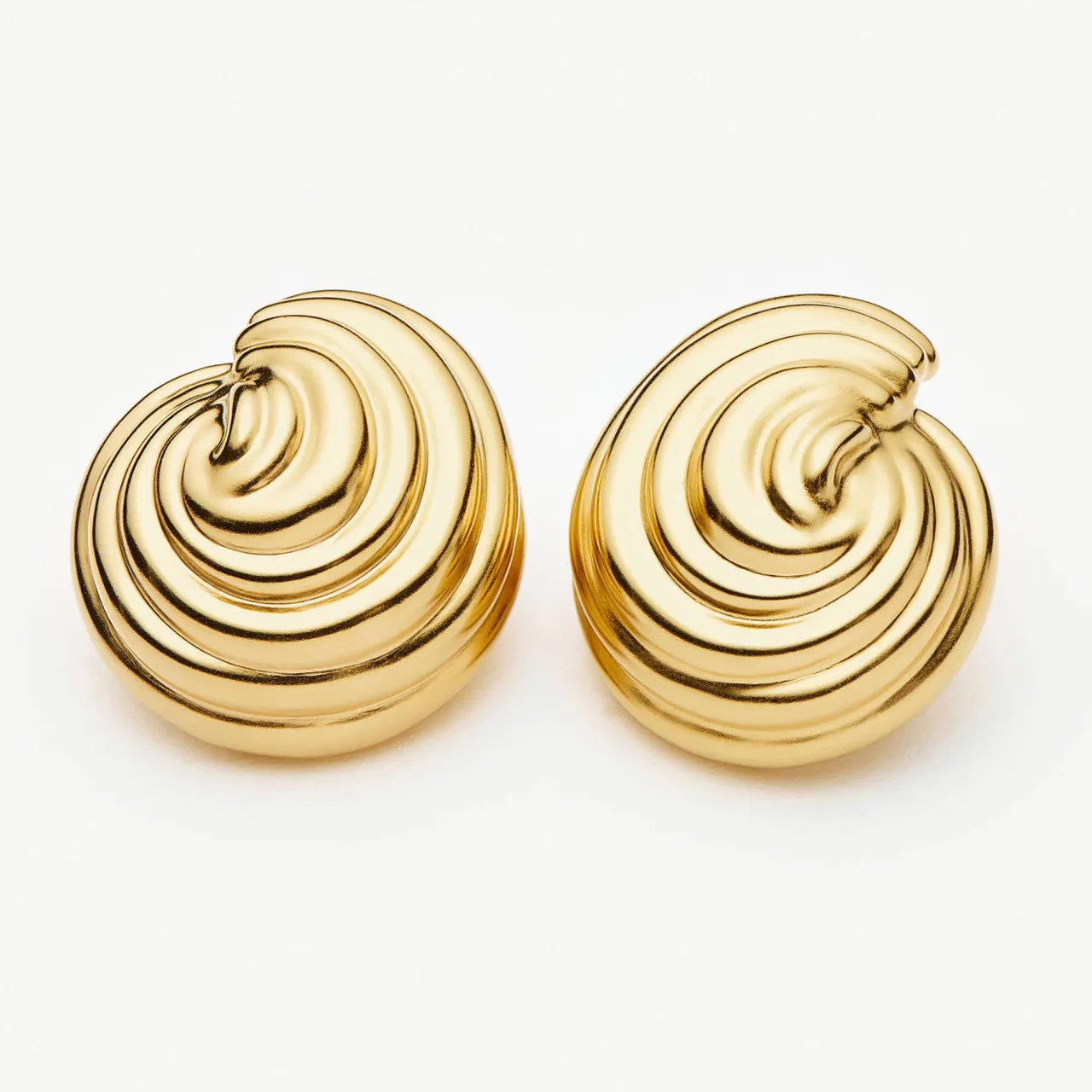 - Spiral collection piece, oceanic-inspired, stud style, three-dimensional domed spiral shape