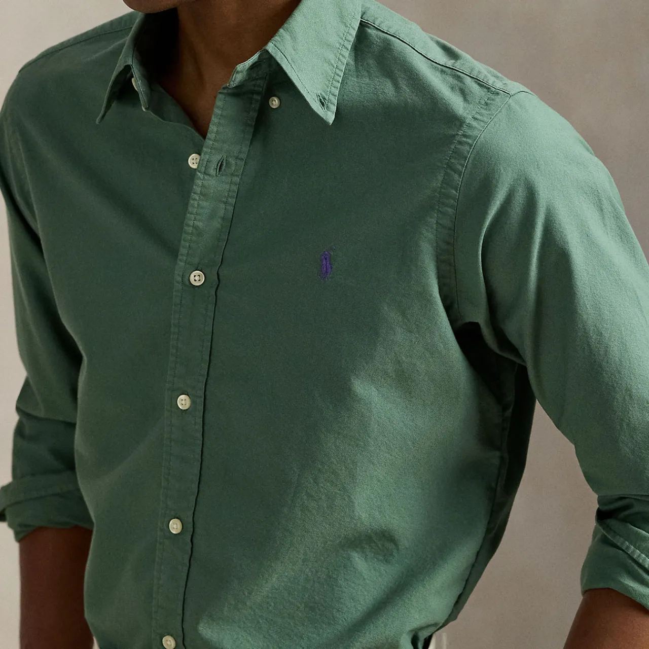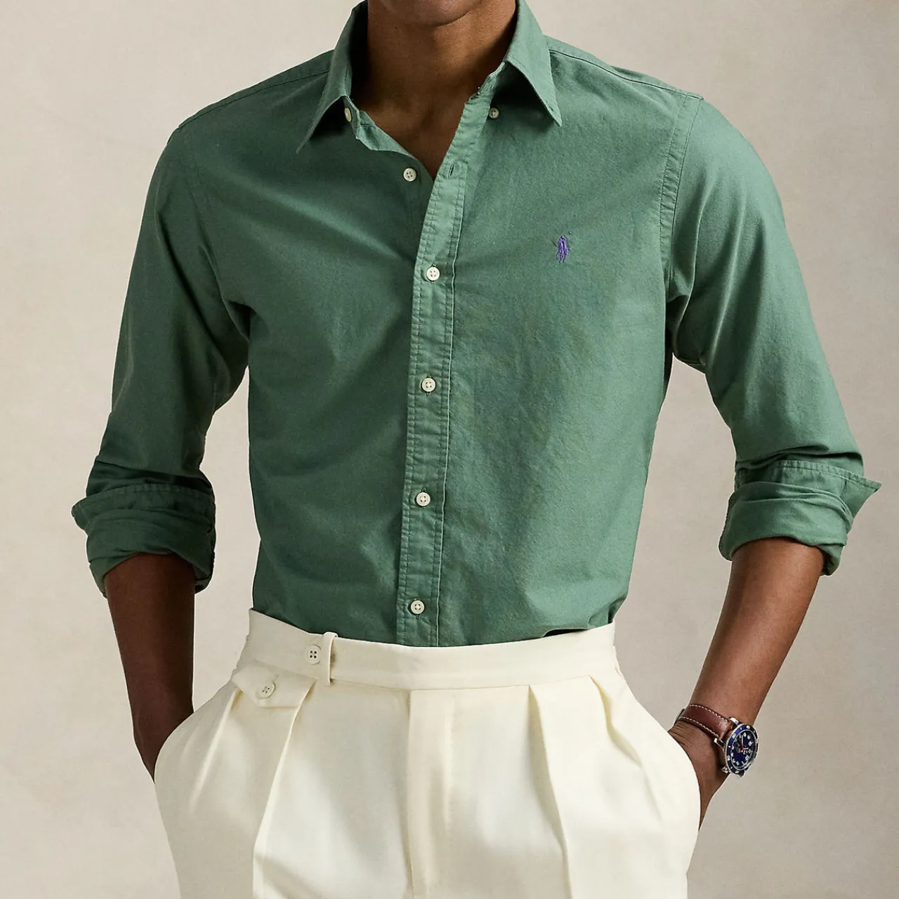 - Button-down collar, button placket, barrel cuffs, box pleat with split yoke for ease of movement