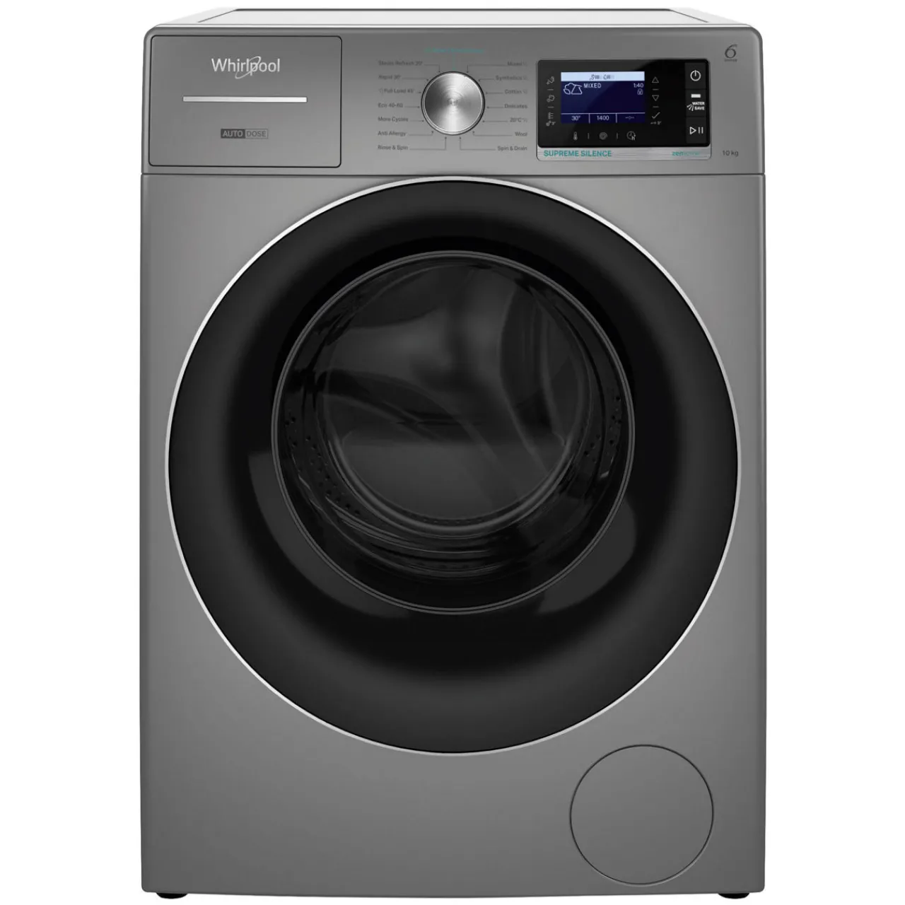 This Whirlpool freestanding Washing Machine features: silver color. A fast, resource-efficient 1400 revolutions per minute spin speed. Exclusive 6th SENSE technology, that dynamically adapts settings to each specific load, ensuring ideal care for all your fabrics. Direct Drive Silence technology, ensuring silent performance, so you can enjoy some extra peace and quiet.