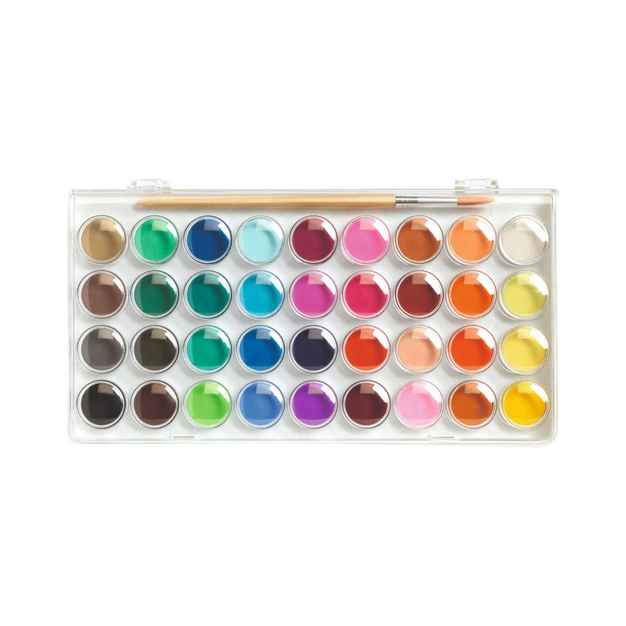- 1 palette of 36 opaque watercolour paints, 1 brush