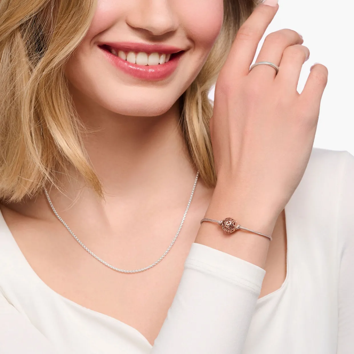 - Laser-cut bead detail, logo plate, double strand, adjustable fit, woven details