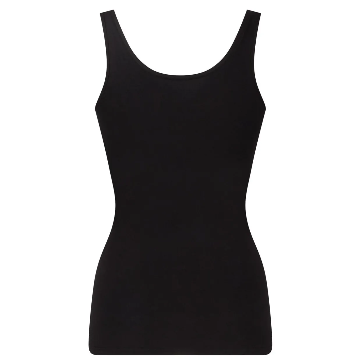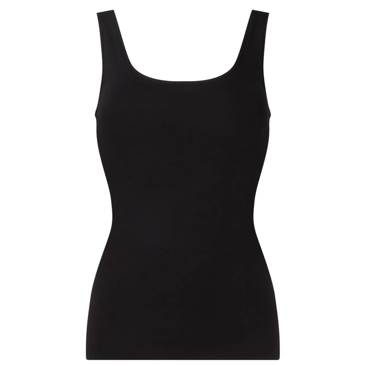 - Wide shoulder straps, round neck, slim fit.