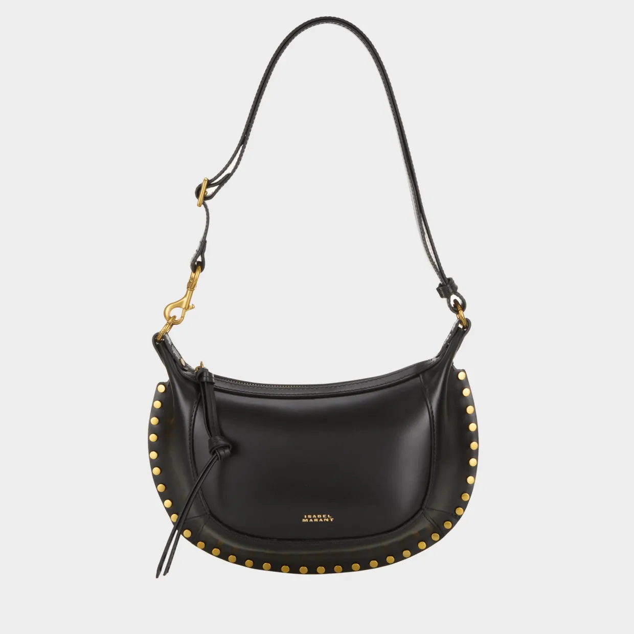 - Moon silhouette, studded detail, detachable and adjustable strap, two internal compartments, central zipped compartment with knotted pull tab
