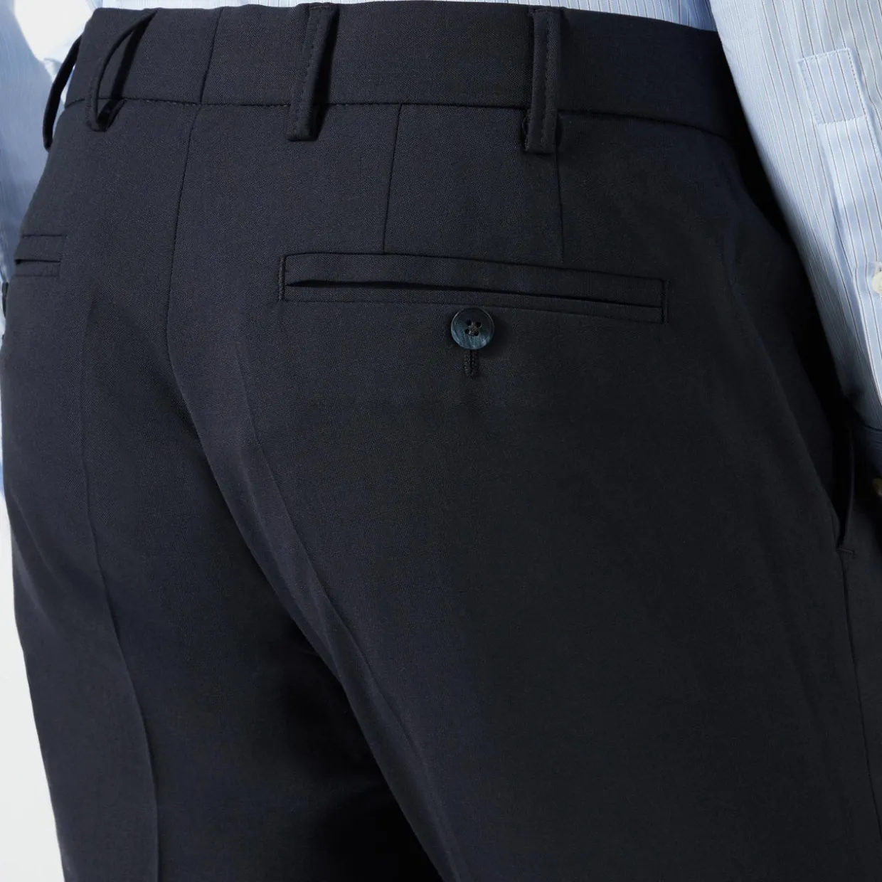 - Pressed creases, belt loops, button fastening.