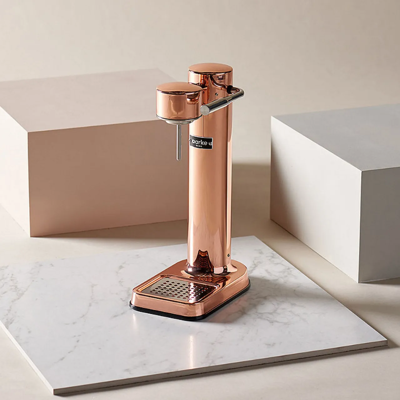 Featuring a sleek and refined shape and a durable screw-in bottom mechanism, the Aarke bottle included with this sparkling water maker seamlessly blends with your countertop or dinner table at home, as well as with your tote bag when you’re out and about.