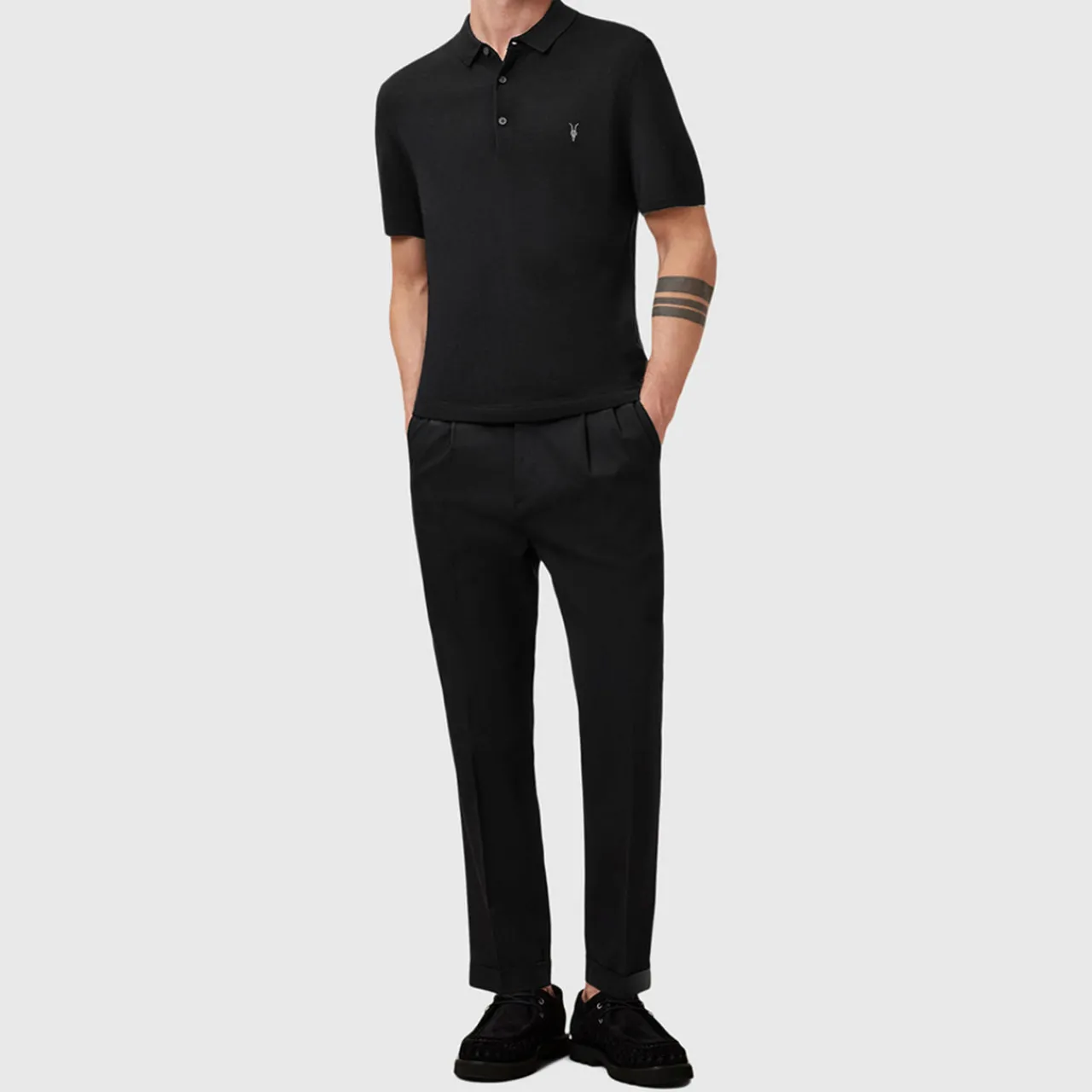 - Polo collar, button fastenings, short sleeves, straight hemline