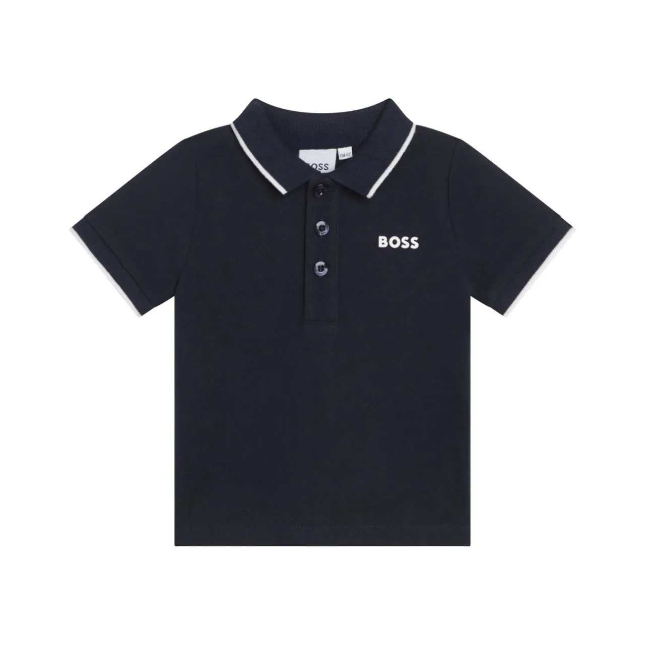 - Cotton piqué, short sleeves, polo collar, button fastenings, contrast trim, printed logo