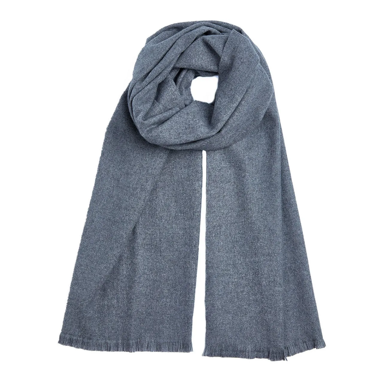 - Fine-knit design, wrap-around style, frayed edges, handwoven, soft finish