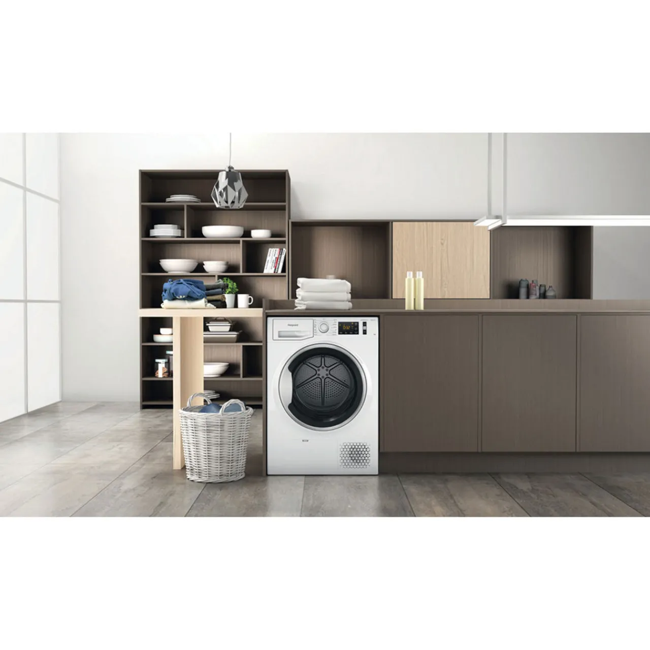 The cycle will automatically end when the desired dryness level is reached thanks to sensors that monitor moisture and temperature levels inside the dryer. This feature guarantees ultimate care for your clothes and ensures maximum energy efficiency.