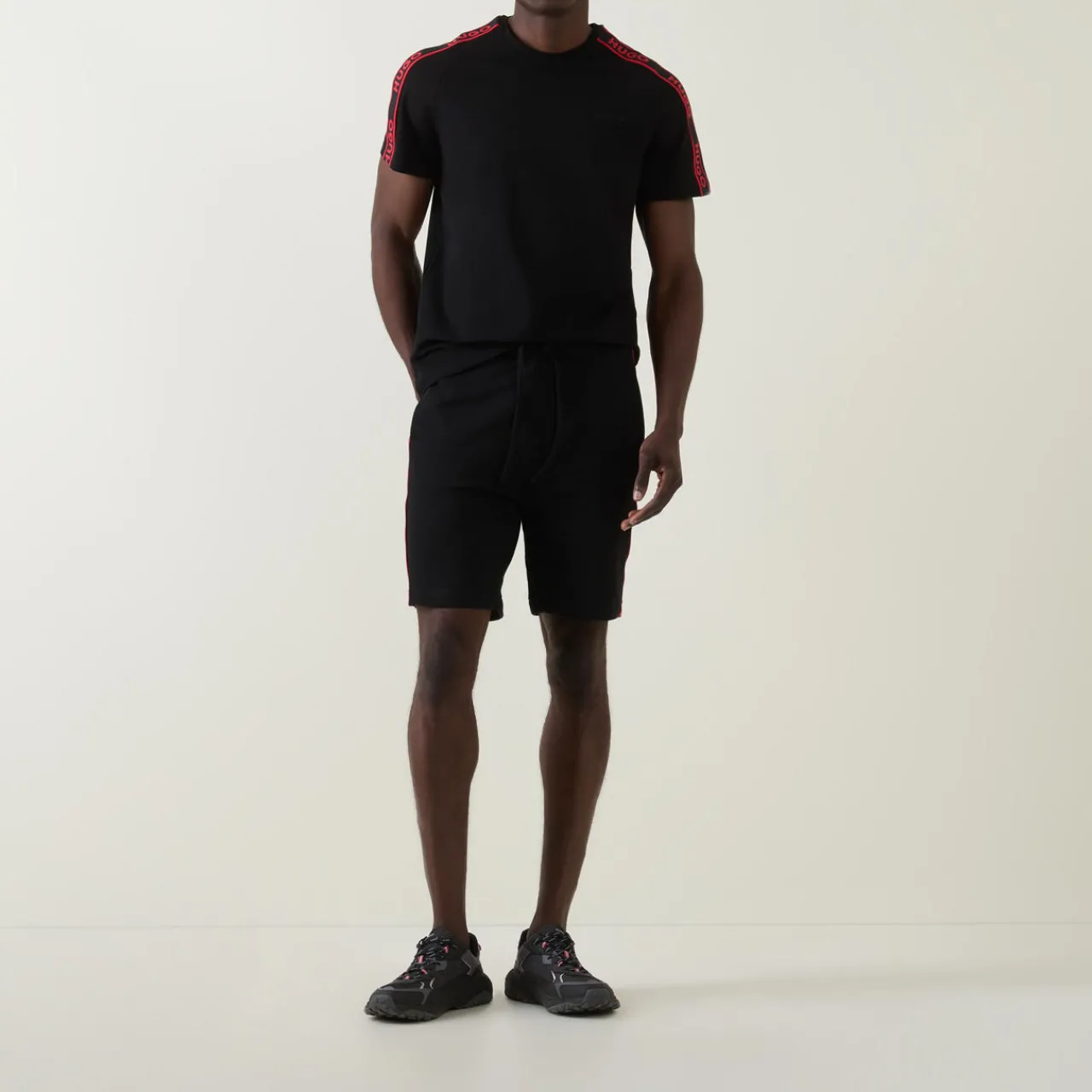 - Elasticated waist, drawstring fastenings, side pockets, logo taping