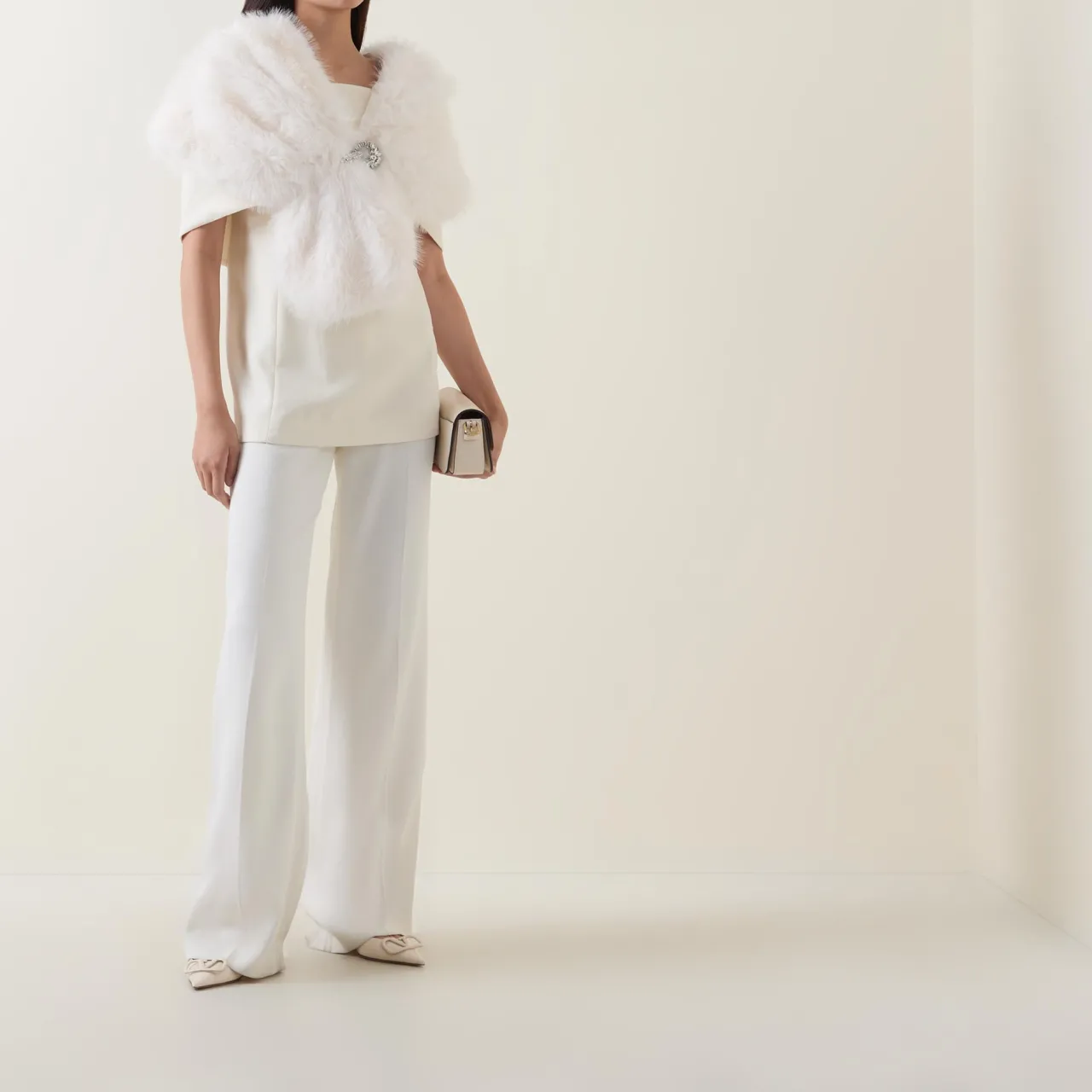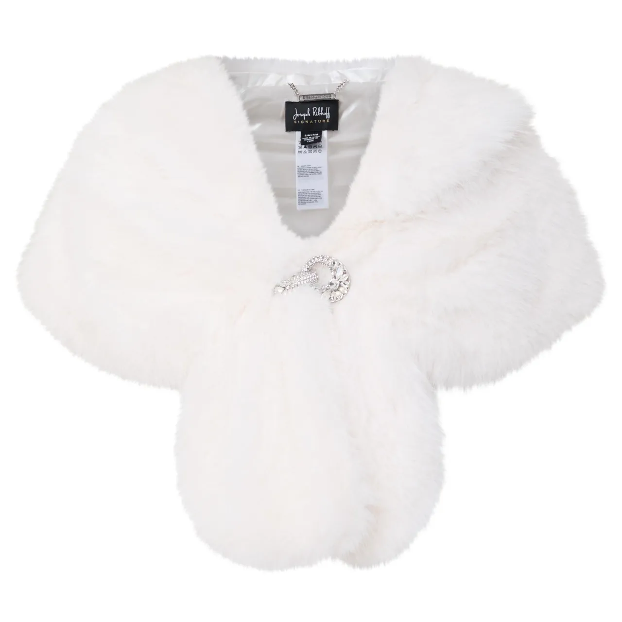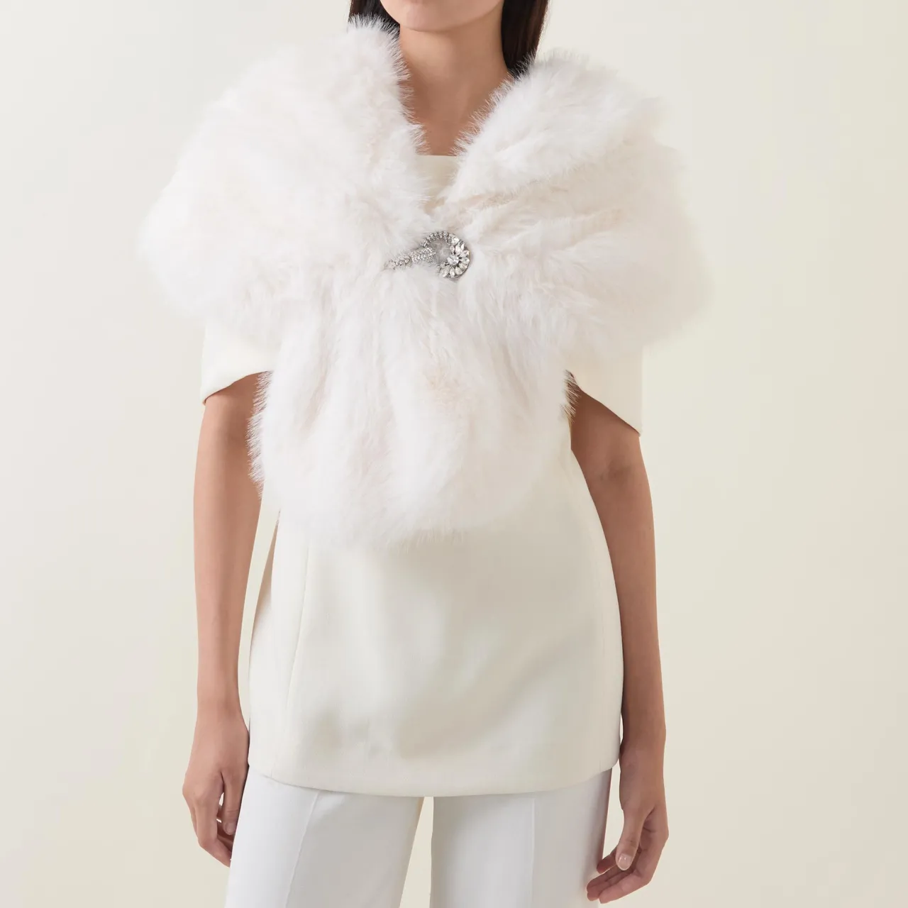 - Shawl collar, single button fastening, embellished detailing, faux fur finish
