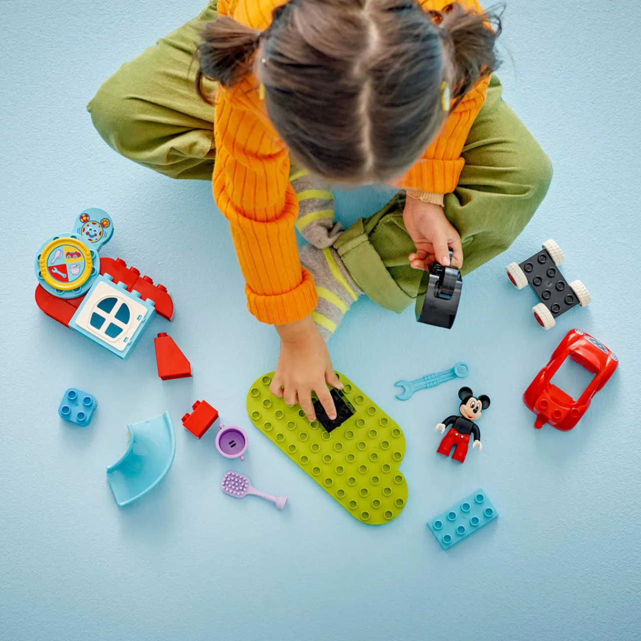 - 27 pieces, comes with LEGO® DUPLO® figure: Mickey Mouse and a Toodles computer element, plus Mickey Mouse’s trusty red buildable car toy from Disney Junior TV show Mickey Mouse Clubhouse